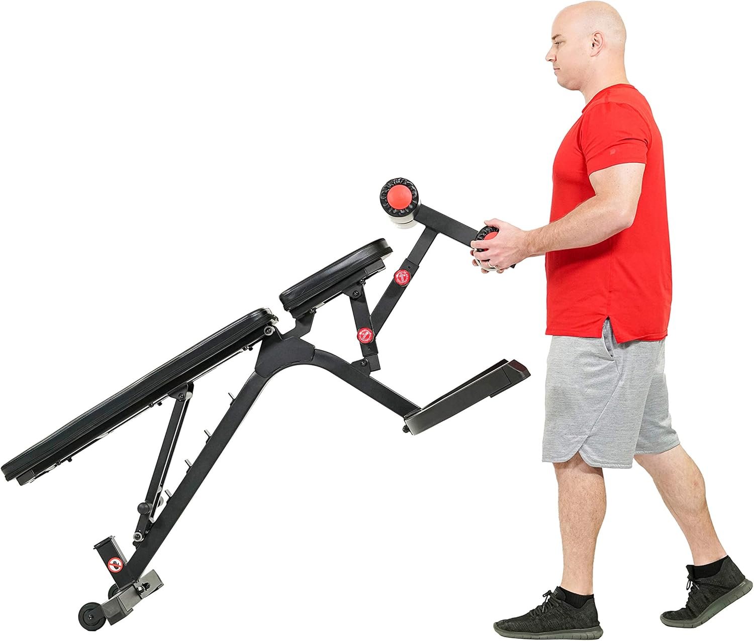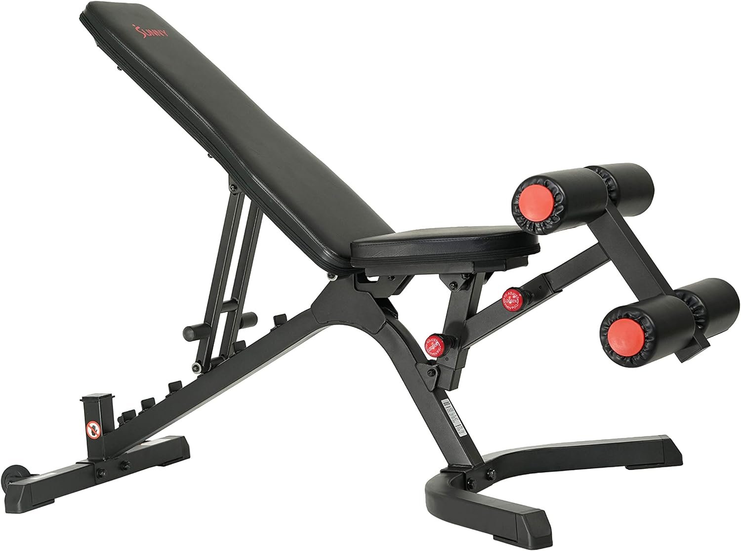 Sunny Health & Fitness Adjustable Multi-Function Incline Decline Weight Bench w/Optional Barbell Rack, Leg Developer, Preacher Curl for Full Body Workout, Chest Exercise, Strength Training, Home Gym