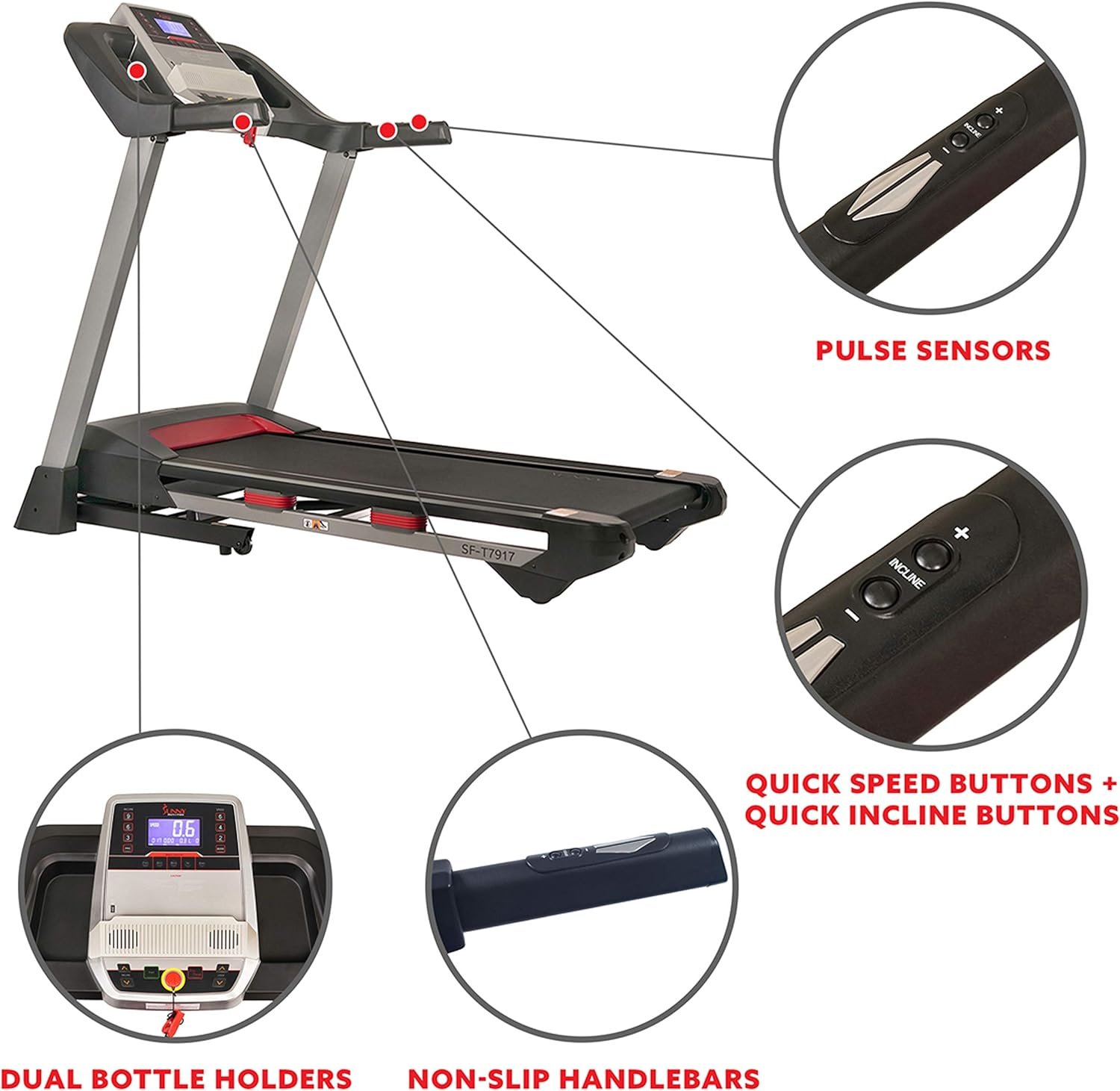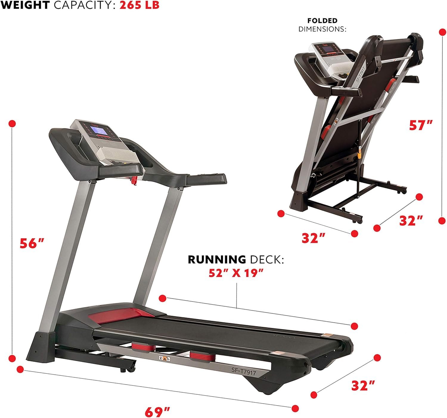 【SPACIOUS RUNNING BELT】The wide running belt (19in x 52in) provides a comfortable and secure running area, allowing you to move freely without the concern of drifting off from your workout.