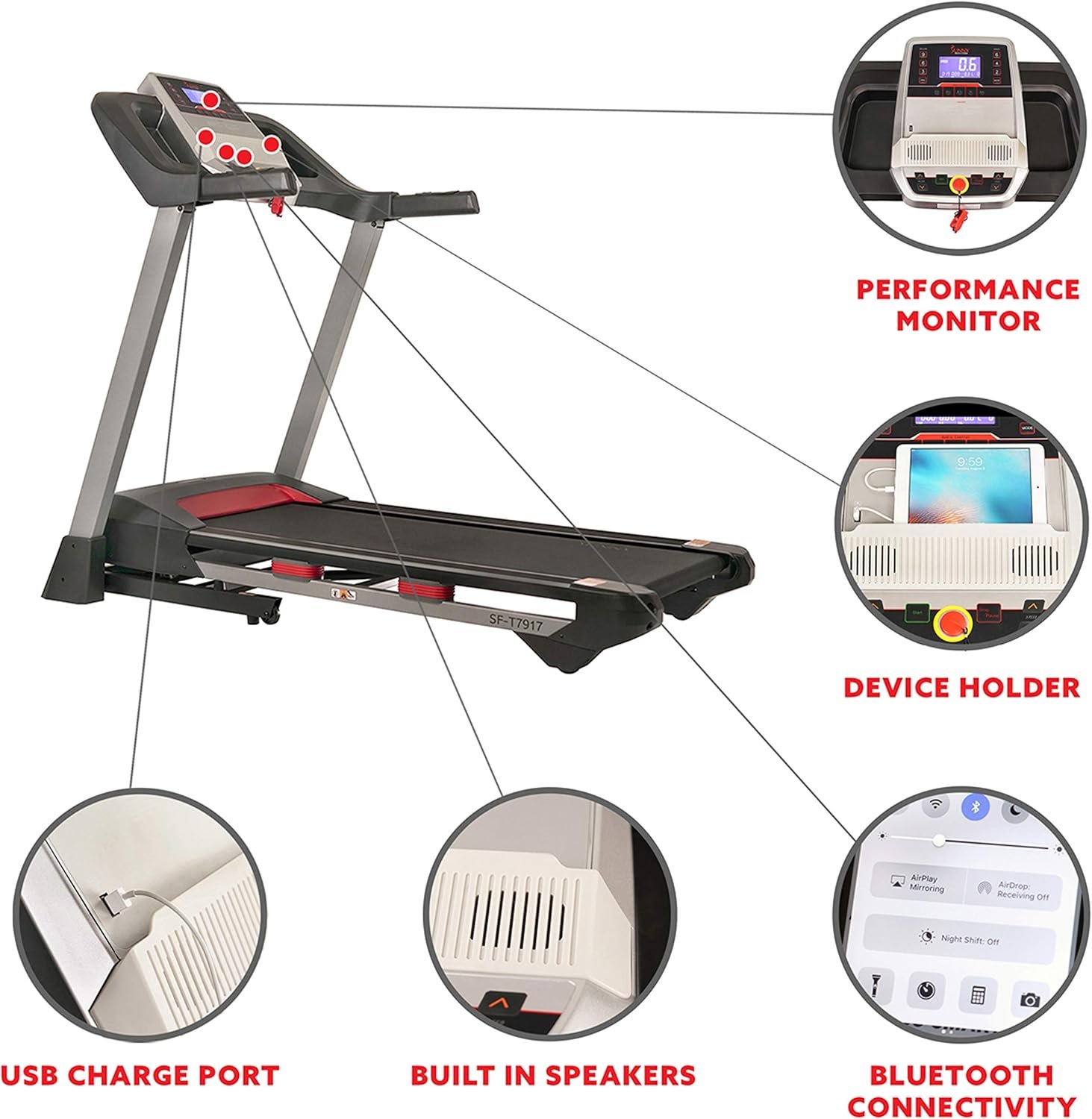 【USB/BLUETOOTH CONNECTION】Charge your devices conveniently with the built-in USB port and stream your favorite music directly to the treadmill’s speakers via Bluetooth for an engaging workout experience.