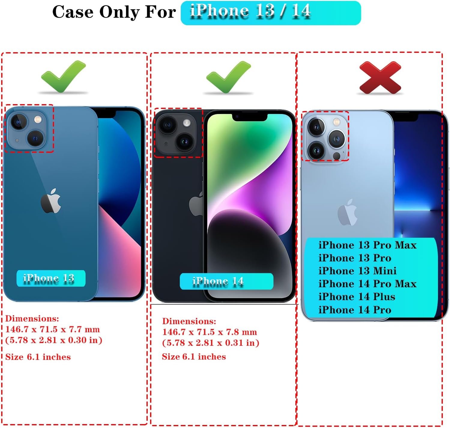【Only Compatible With iPhone 13 / 14】.Package includes HD Screen Protector and install them according to the instructions.【Note that】wireless charging is not supported!