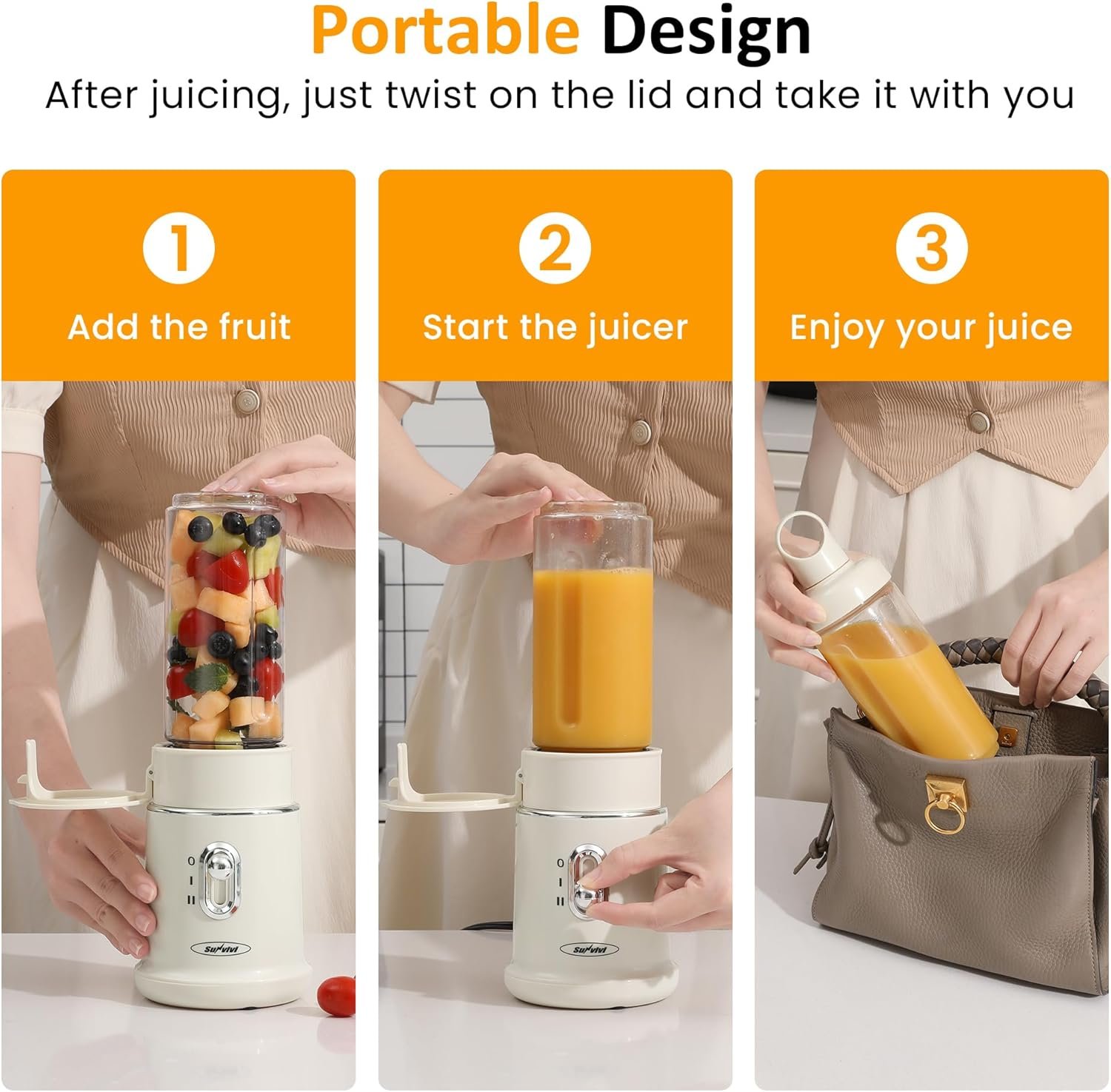 Portable Design: Equipped with a portable blending cup, this blender offers exceptional convenience by letting you blend juice directly into the cup. After juicing, simply twist on the lid and take it with you, eliminating the need for extra containers. Perfect for a busy lifestyle, it ensures you can enjoy fresh, healthy juice on the go.