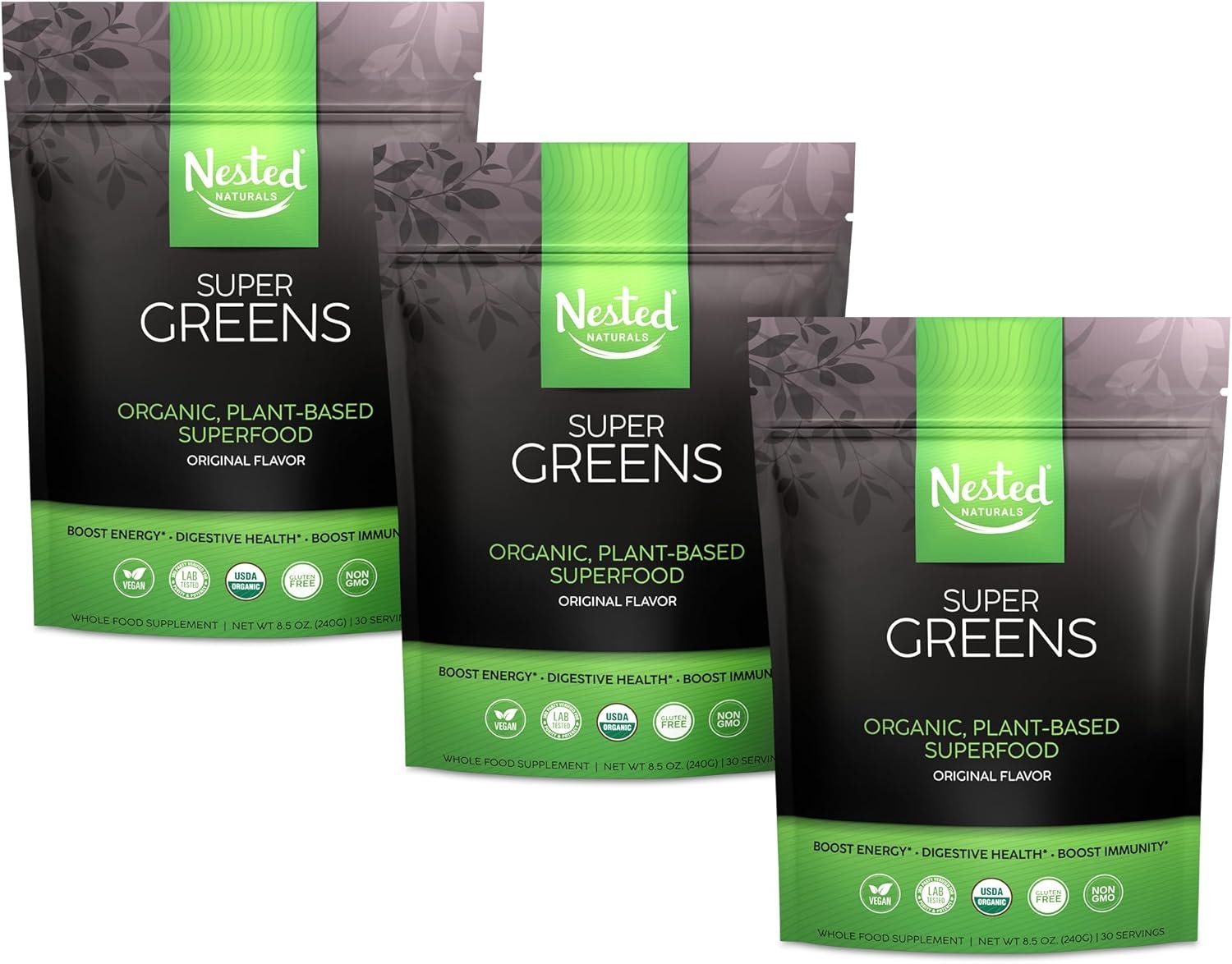 Certified USDA Organic Greens Powder: Nested Naturals green superfood powder formula is non-GMO, vegan, and certified as organic by the USDA. Not only that, our Super Greens powder is third-party tested to ensure you’re getting only the highest purity and potency of ingredients.