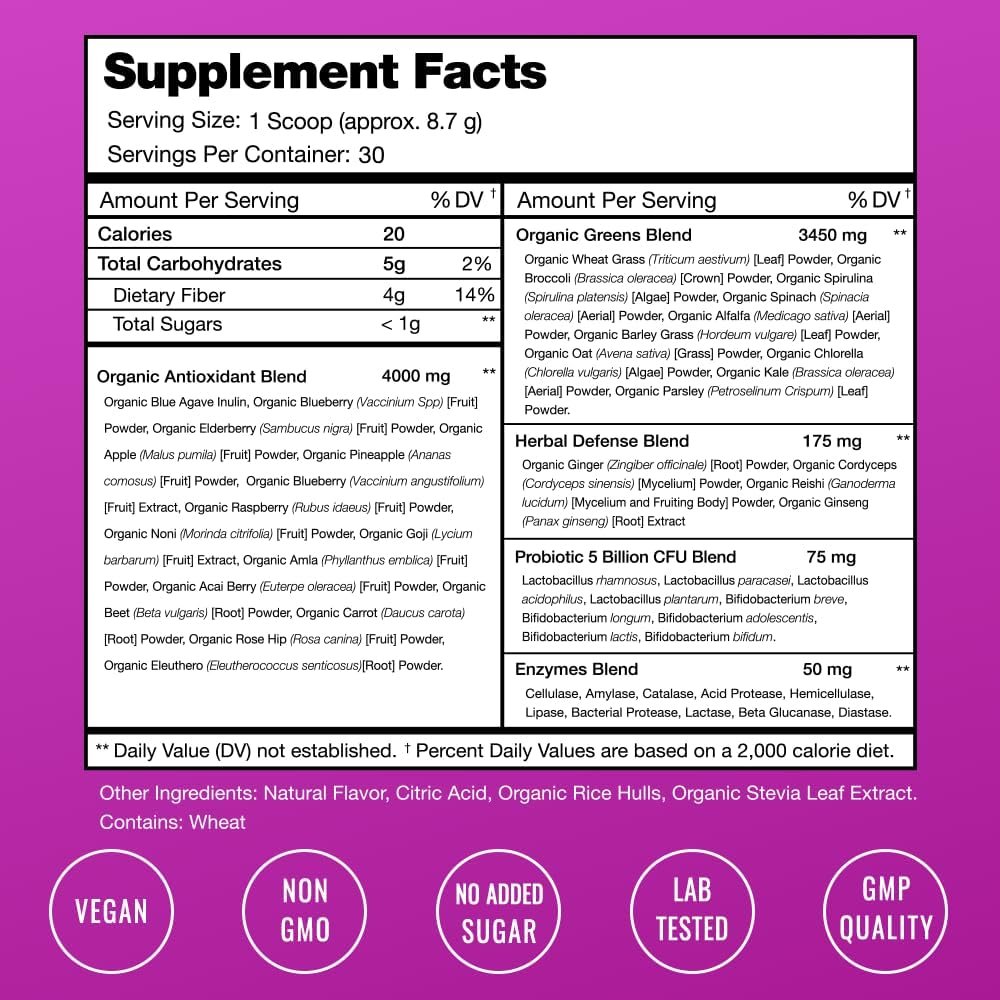 40+ Nourishing Superfoods – Hydrate and revitalize with a super boost of 40+ wholesome, nutrient-rich superfoods that are absorbed by the body quickly and easily. Perfect for clean energy on the go, getting your daily dose of greens just got easier!