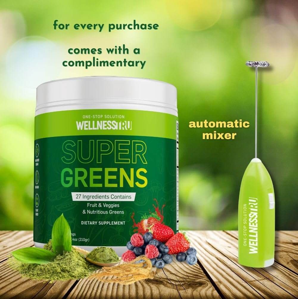 COMPLETE YOUR DAILY GREENS INTAKE: With 27 fruits, veggies, and nutritious supergreens, WellnessTru greens superfood powder ensures you get all the essential nutrients your body needs. Perfect for those who struggle to consume enough fruits and vegetables daily.