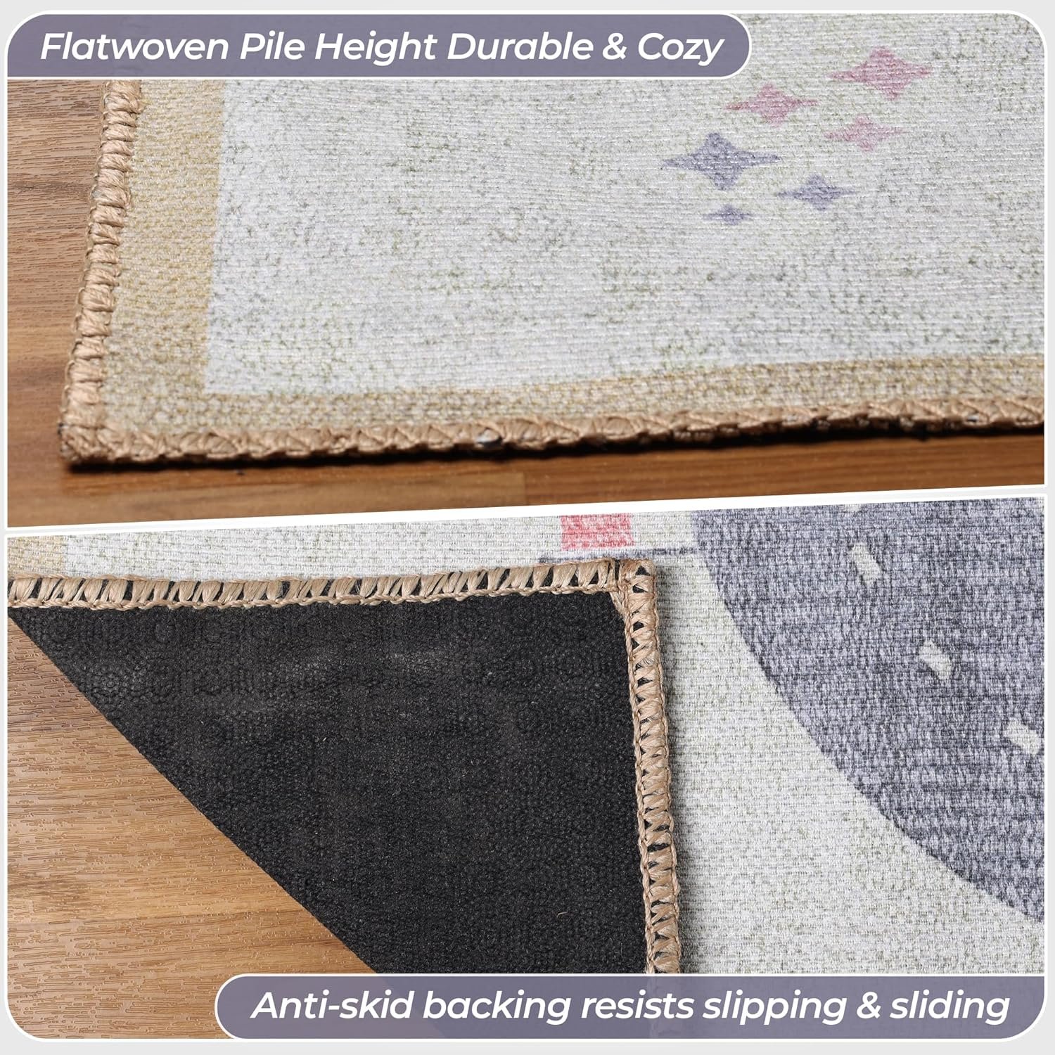 𝐒𝐓𝐔𝐑𝐃𝐘 𝐀𝐍𝐃 𝐂𝐎𝐌𝐅𝐎𝐑𝐓𝐀𝐁𝐋𝐄: Crafted with 100% nylon; Non-slip felt dot backing keeps rug securely in place; Flatweave pile height adds a comfortable layer to floors and fits under most doors; For your convenience, area rug can be rolled for easy storage