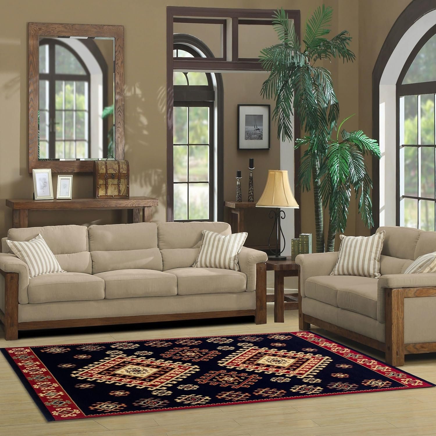 Tie together the decor of any room with the Superior Santa Fe Indoor Area Rug. Crafted from durable polypropylene with jute backing, this indoor area rug is perfect for busy homes with children and pets. This luxurious rug provides much needed relief from cold tile or hardwood floors with a cozy 0.31 inch rug thickness. Sturdy and soft, this rug easily fits under most doors and allows chairs sitting atop to slide when needed. Available in a variety of bold color options, this rug will add character and eclectic charm to your floors.