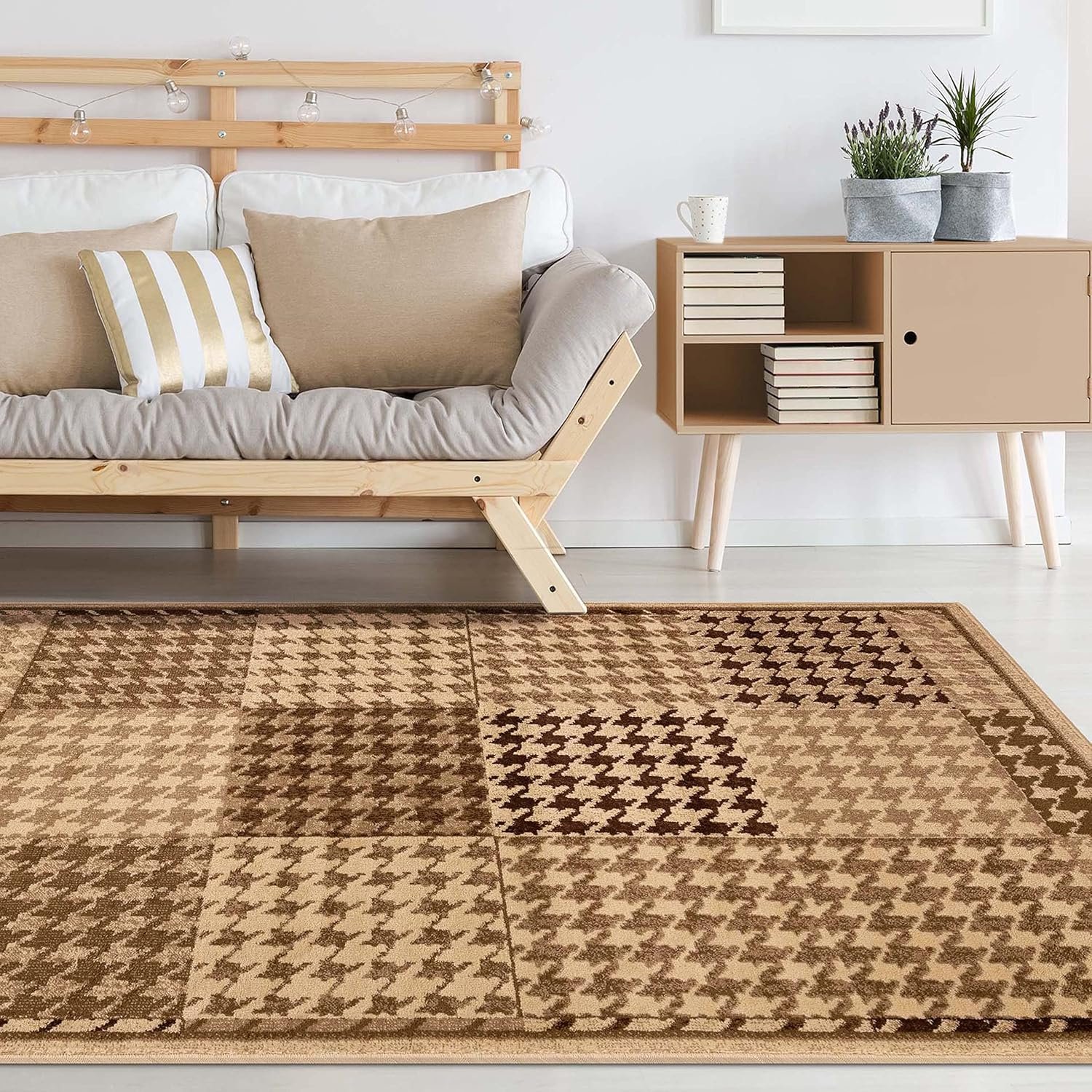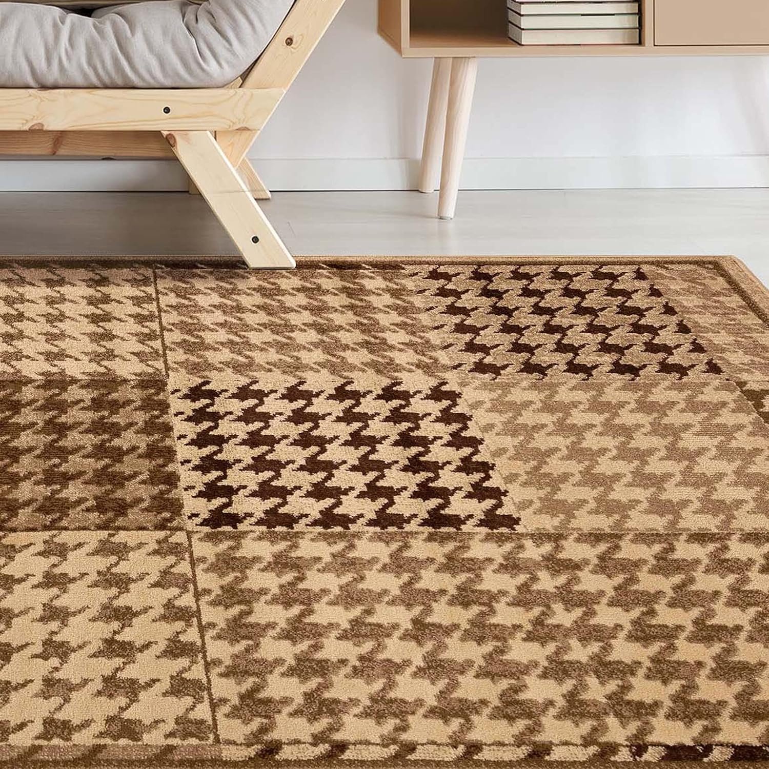 Revamp your home decor with the dazzling modern style of the Natte Indoor Area Rug by Superior. Crafted from durable polypropylene fibers, this beautiful rug has a cozy feel that can withstand high-traffic rooms with children or pets. The plush 0.39 inch rug thickness is easy to clean, sturdy, and durable. Displaying color blocks layered with a houndstooth pattern, this dynamic rug is the perfect accent to your modern farmhouse, contemporary, or rustic home style. Available in mocha and beige color options, this versatile rug will tie together your home decor seamlessly.