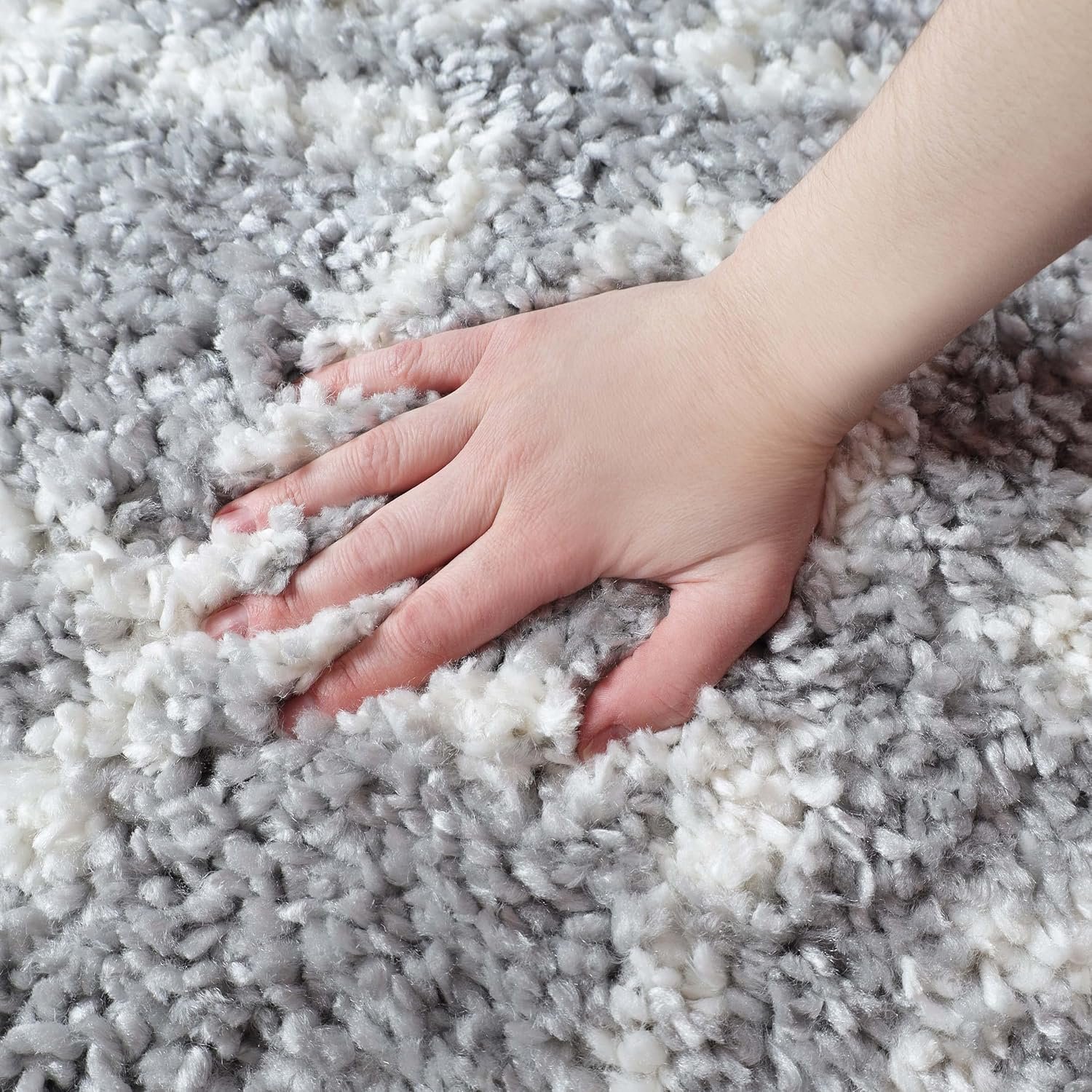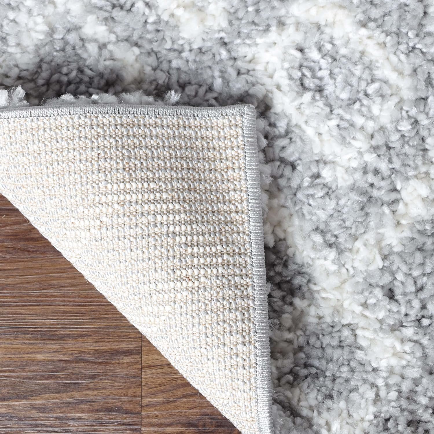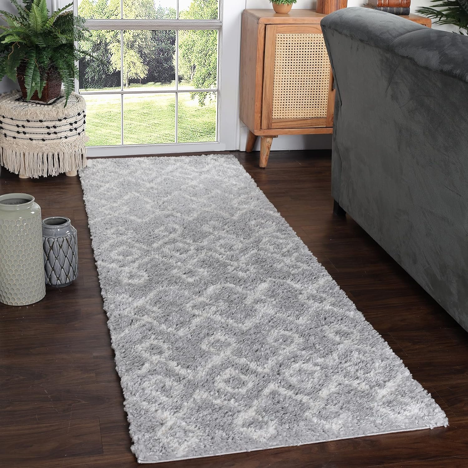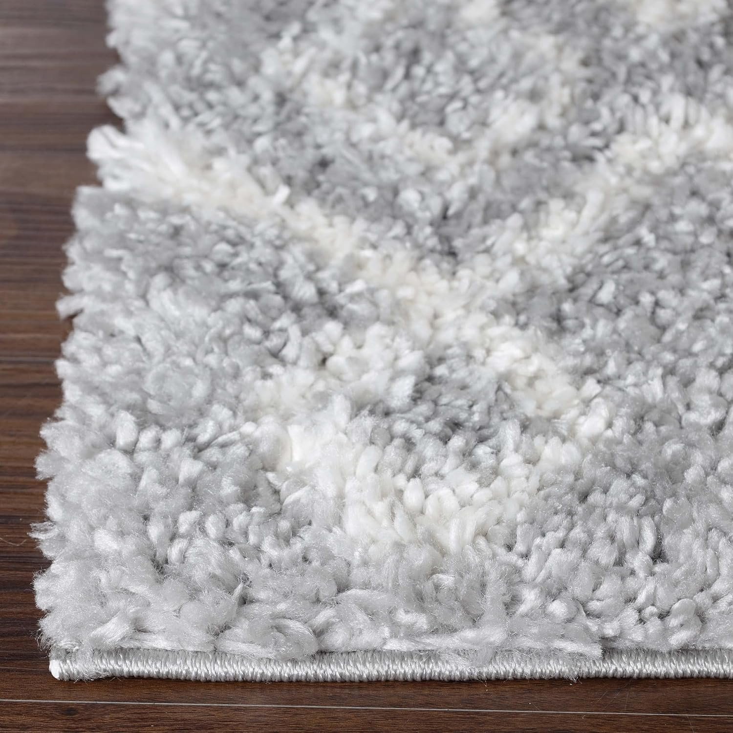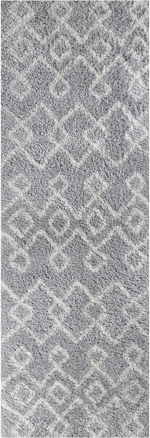 Superior Indoor Area Rug Perfect for Bedroom, Laundry Room, Entryway, Playroom, Nursery, Fluffy Carpet Cover, Modern Geometric Diamond Lattice Shag Alia Collection, 2′ 7″ x 8′, Light Grey & Ivory