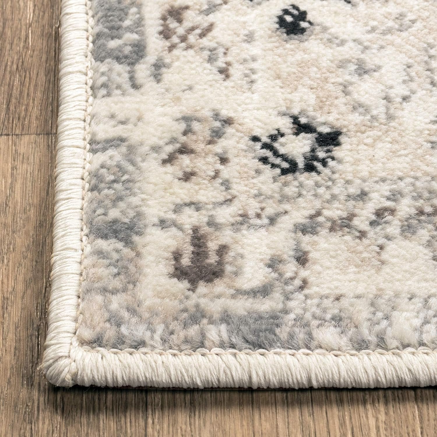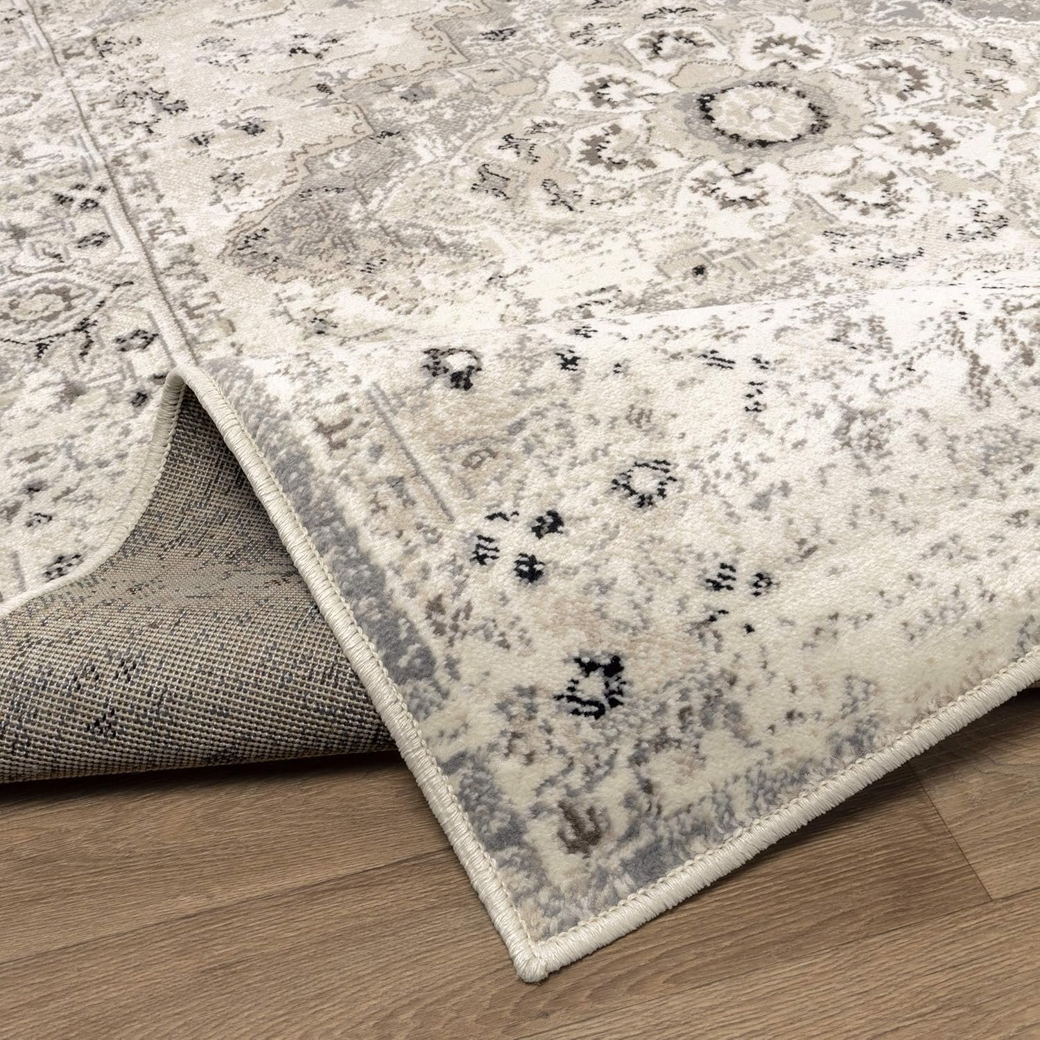 Traditional style meets distressed design in the Nysa Area Rug by Superior. A truly alluring piece, Nysa displays lovely medallion in distressed oriental pattern. A broad border throughout creates an antiqued, bohemian look. Available in three color options of camel, slate, or cream, and in an abundance of sizes, the decorating options are endless. This rug collection has the beauty and suppleness of a traditional pile that is altogether practical, durable, and colorful. The 8mm pile height has a comfy feel and can also hold up to high traffic areas in your home.
