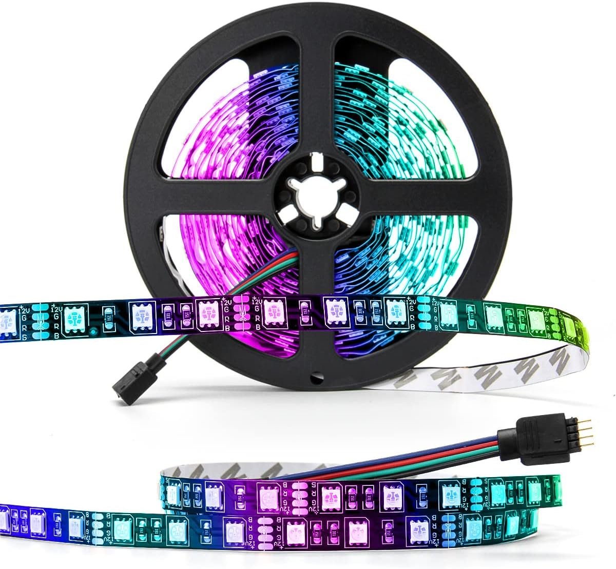16.4ft SMD 5050 LED Strip: There are 300pcs leds on 16.4ft flexible black color board.On the back of tape,double-side adhesive tape can help you install strip easier.Please make sure the surface is dry, smooth and no dust. (No Power or Remote)