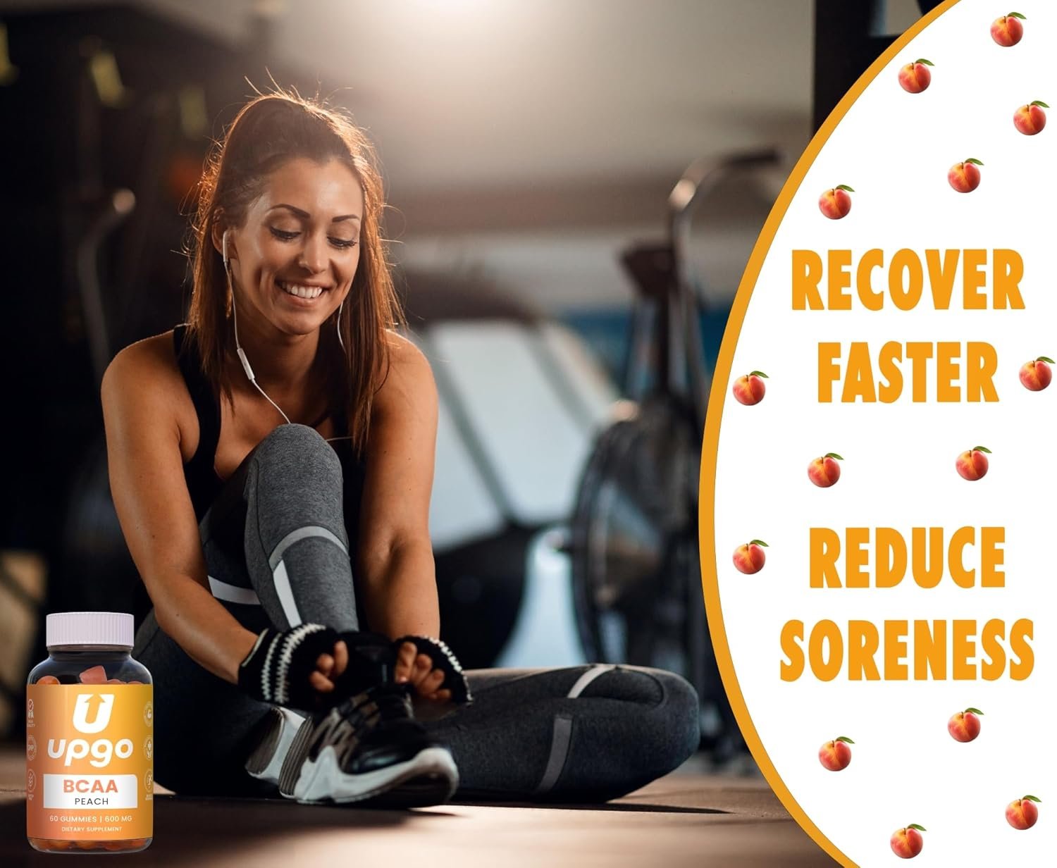 A MONTH SUPPLY OF BCAA SUPPLEMENTS IN A SINGLE BOTTLE. Each bottle of UpGo BCAAs comes with 60 gummy fruit snacks. A serving size is just one of our delicious BCAA gummies, giving 30-days of muscle recovery and build packed into one small bottle! No more lame powders, just throw a bottle in your gym bag, or in your pantry, and get used to craving your BCAAs for once.