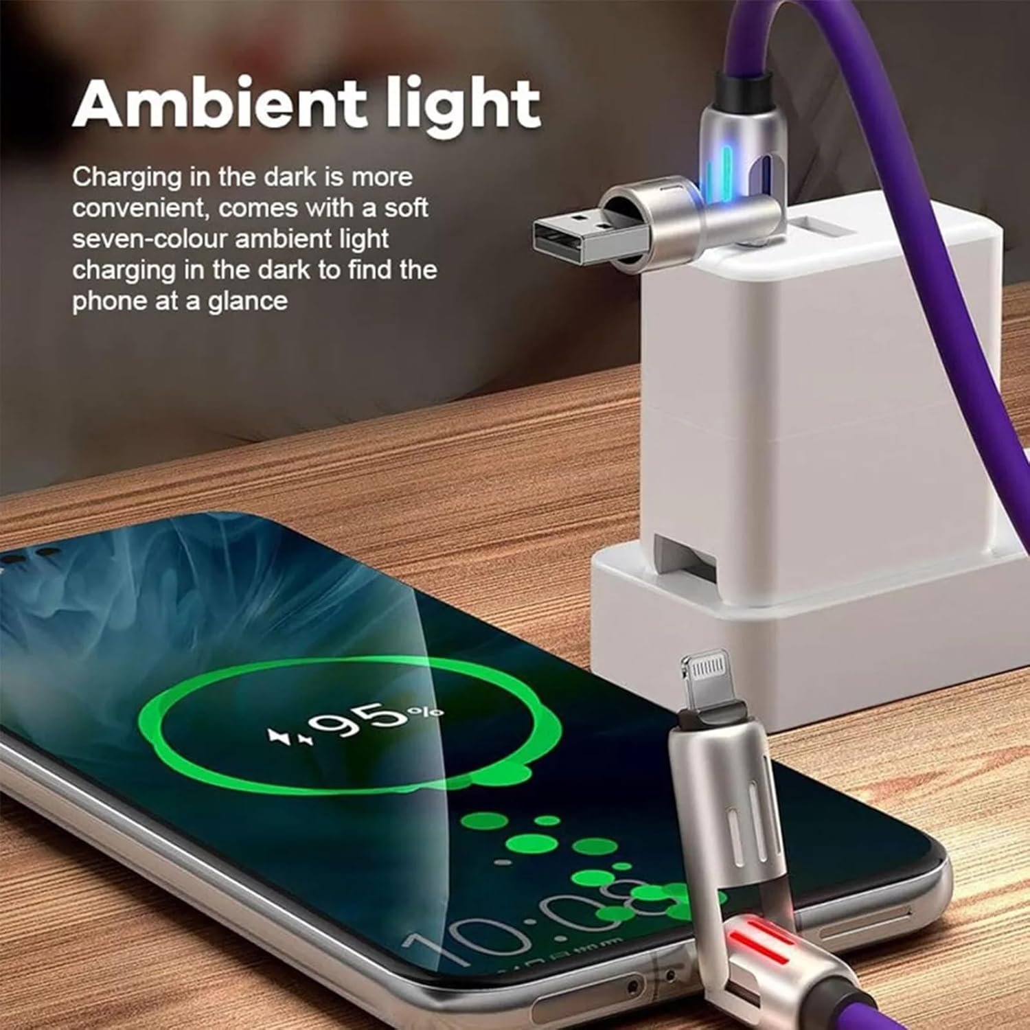Cool Breathing Light for Night Convenience: Enjoy the colorful built-in breathing light that adds a stylish touch to your charging experience. The light makes it easy to locate the 4-in-1 charger with breathing light in the dark, offering practicality and aesthetics in one