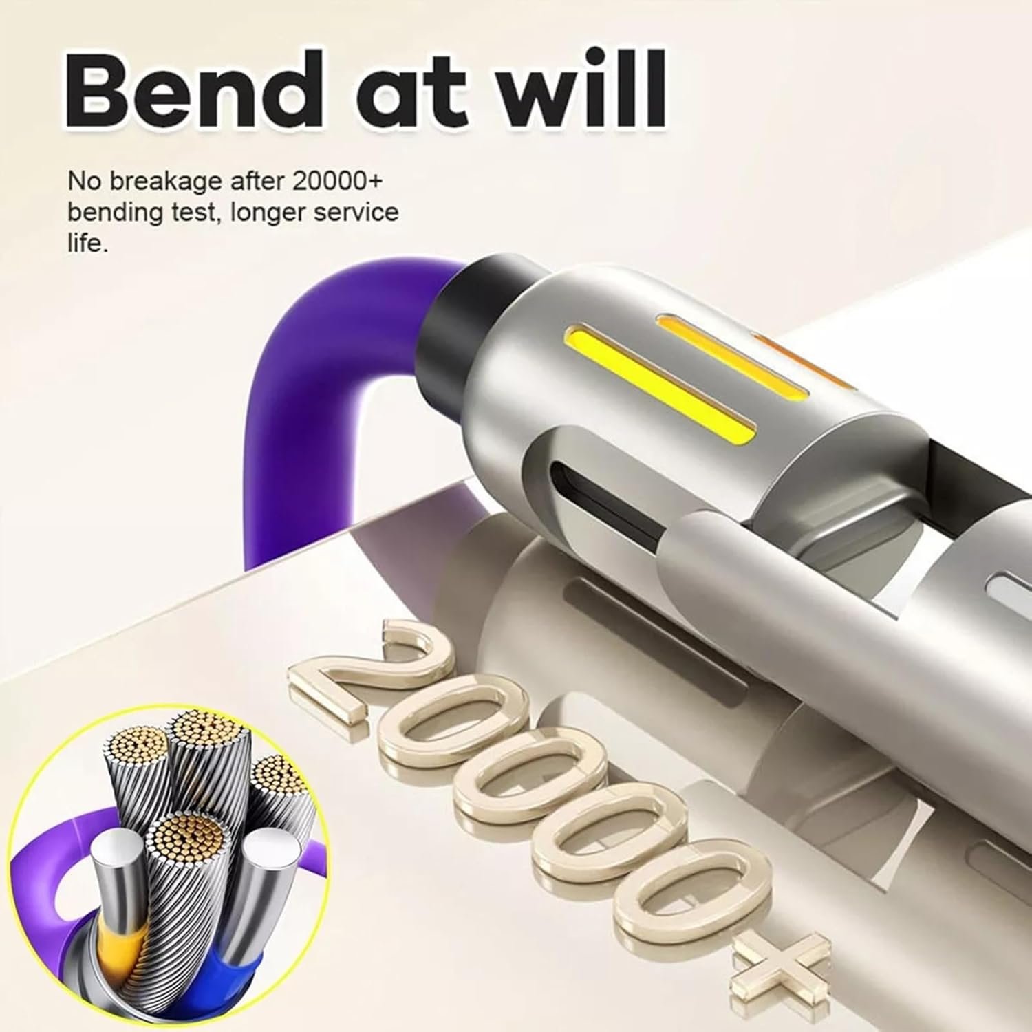 Durable and Reliable Construction: Built to last, this cable features premium liquid silicone for flexibility and a sturdy zinc alloy shell for enhanced durability. Tested over 20,000 bends, the 240W USB C universal data cord resists wear and tear, ensuring dependable use over time