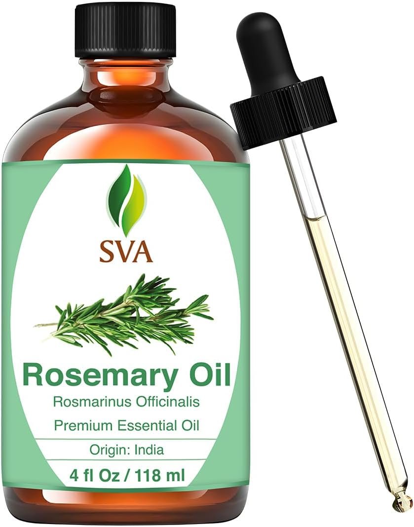 Premium Quality Rosemary Essential Oil: SVA Rosemary Oil is an essential oil and is obtained by steam distillation of Rosmarinus Officinalis herb. Our Rosemary oil is free of preservatives and comes with a dropper for easy application. It is not tested on Animals. We care for you!