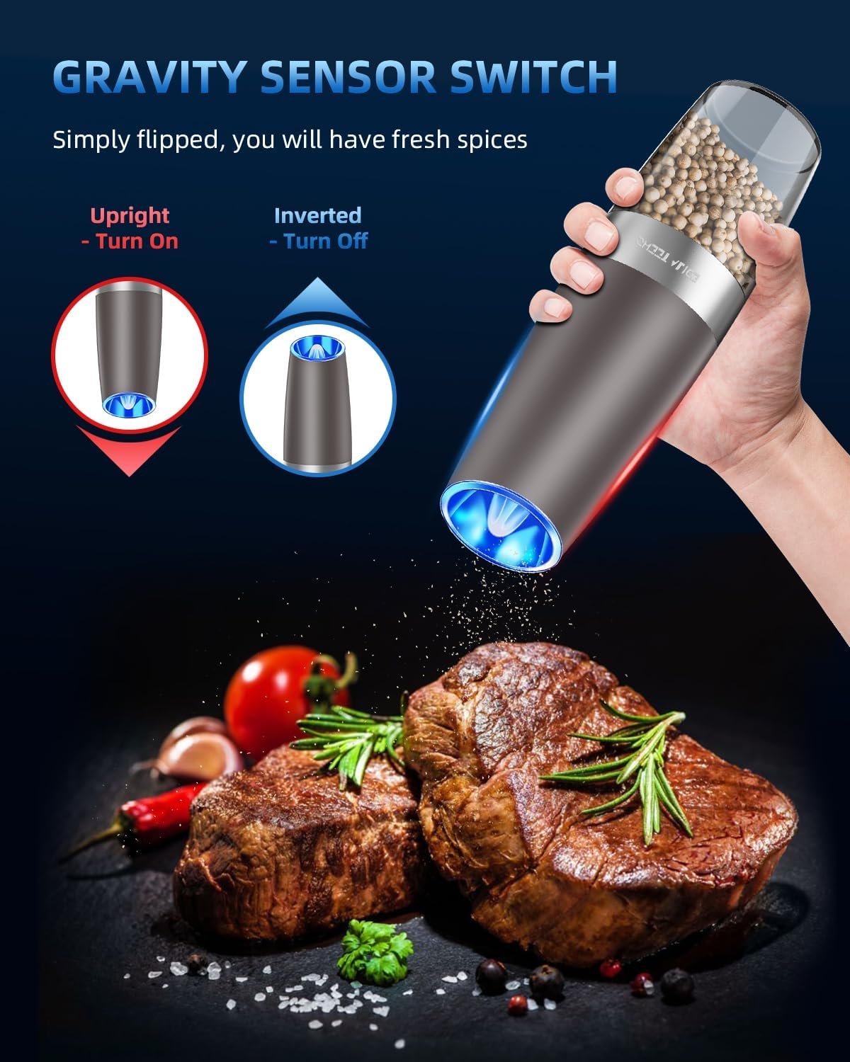 WIDE APPLICABILITY Pepper Grinder Set salt and pepper electric grinder set Gravity Electric Pepper and Salt mill Set Gravity Electric Pepper and Salt mill Set
