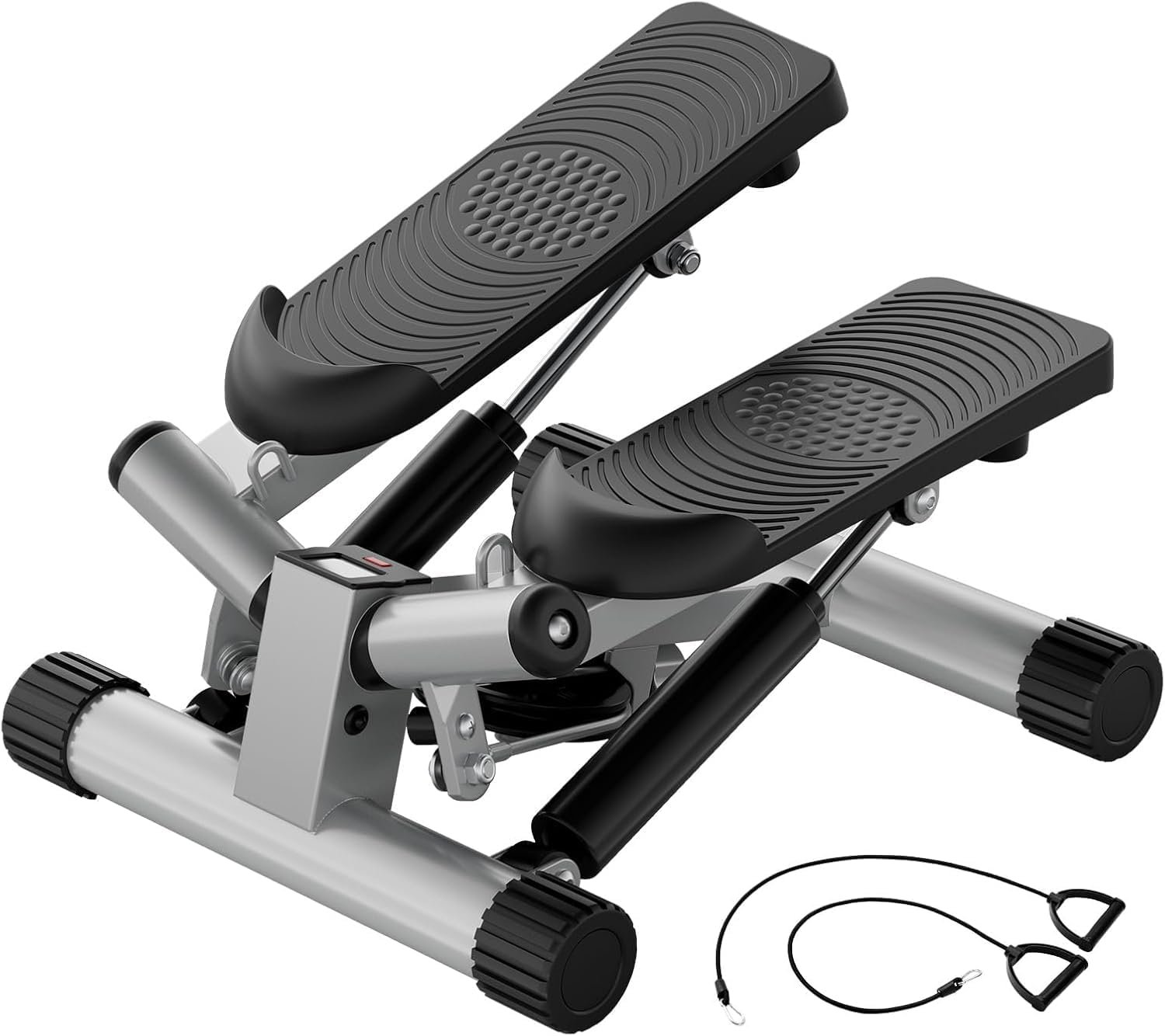 Mini Stair Steppers with Resistance Bands for Exercise at Home, Portable Exercise Twist Stepper Machine for Full Body Workout