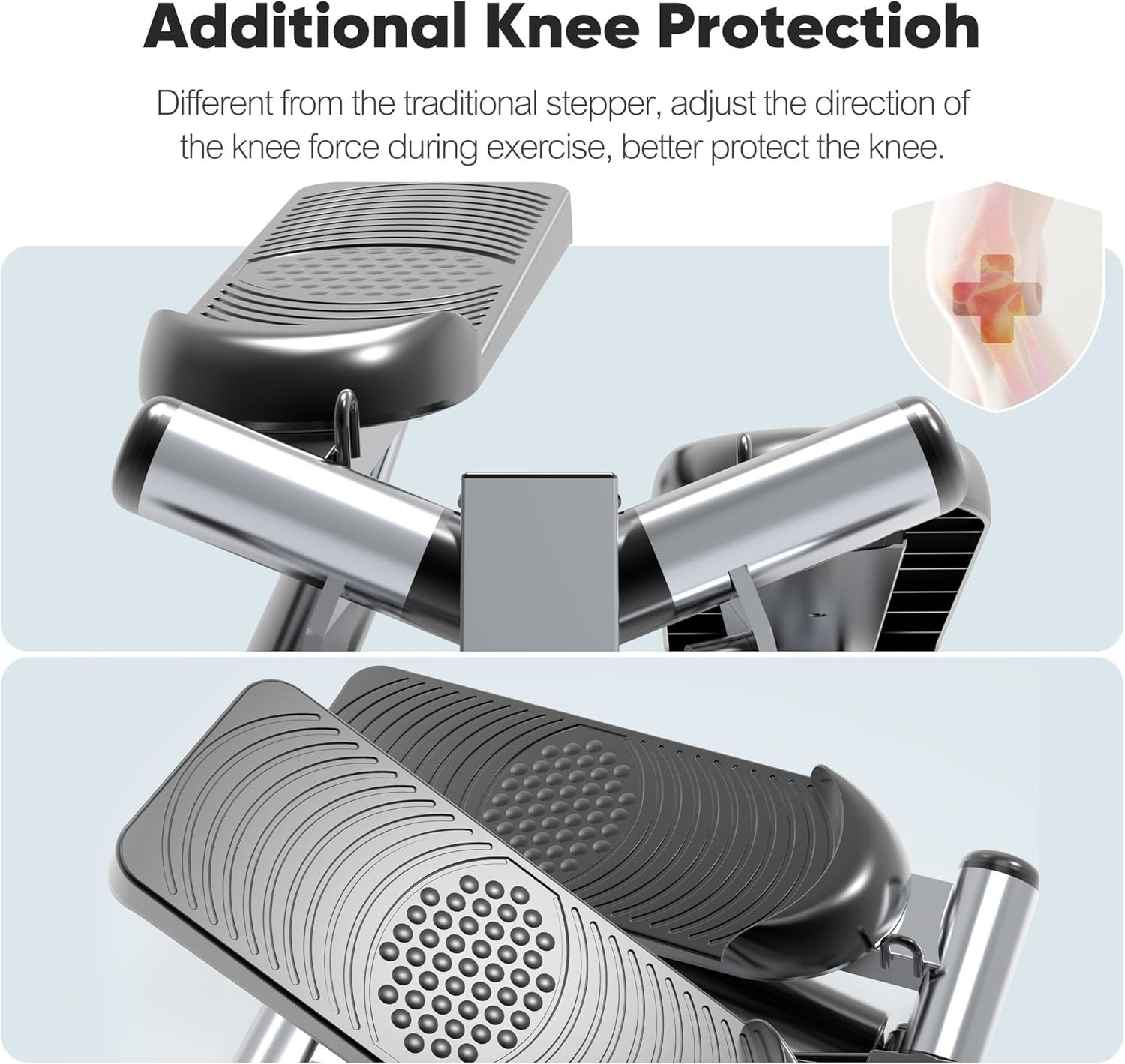 Whisper-Quiet Operation for Undisturbed Workouts: Utilizing an ultra-quiet hydraulic drive system and silent silicone cushioning pads under the foot pedals, the twist stepper operates at under 25dB. Enjoy smooth, noise-free workouts at home, without disturbing your surroundings.