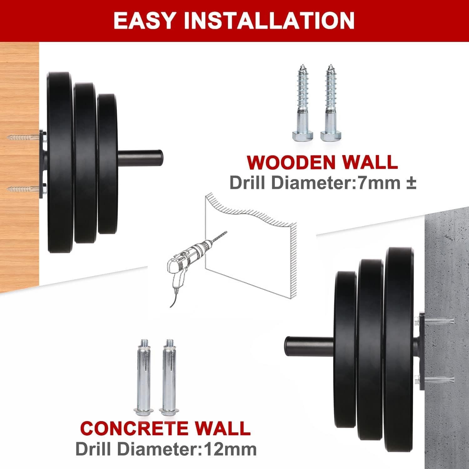 💪WALL MOUNT & WOOD Mount – Comes with 4pcs expansion bolts & 4pcs wood screws.