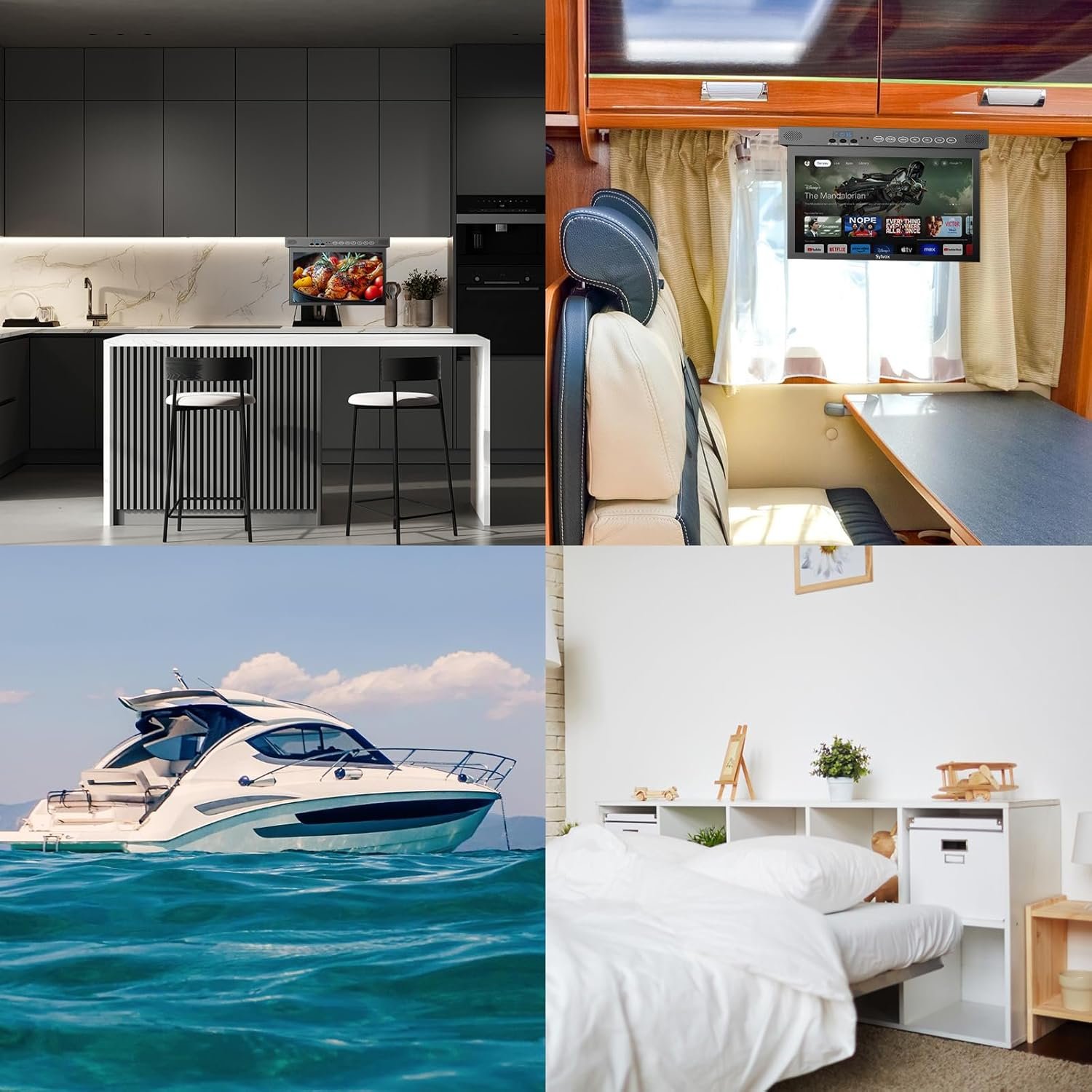 Under Cabinet TV: Flat screen TV supports ARC &CEC, WiFi, and Wireless Connection, with LED clock display, and can set the cooking timer alarm clock to make your delicious dishes appear on time.
