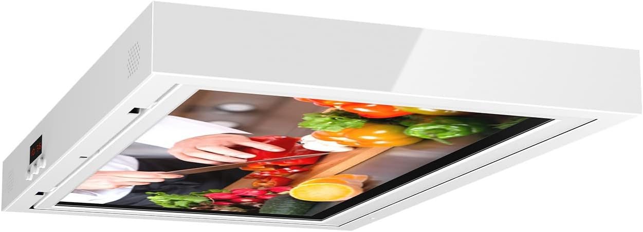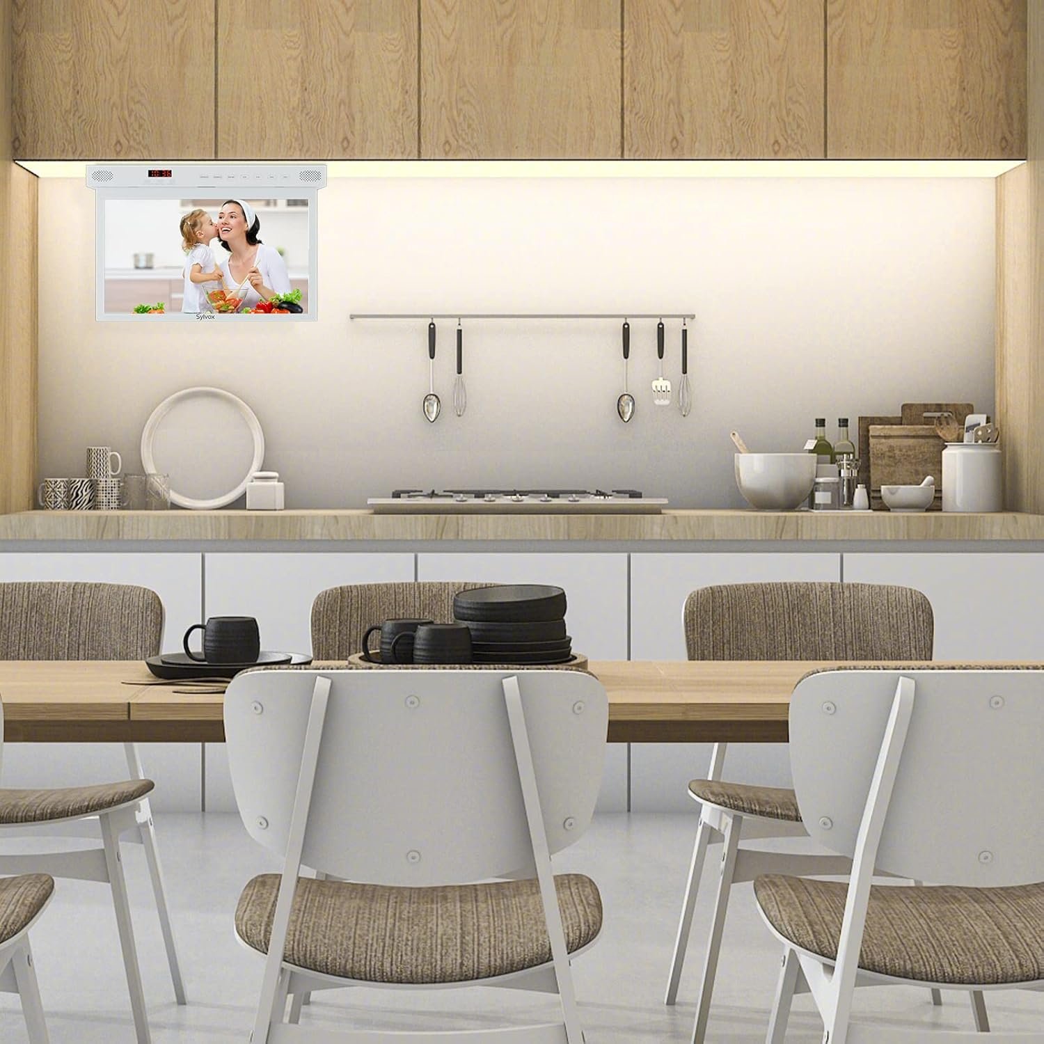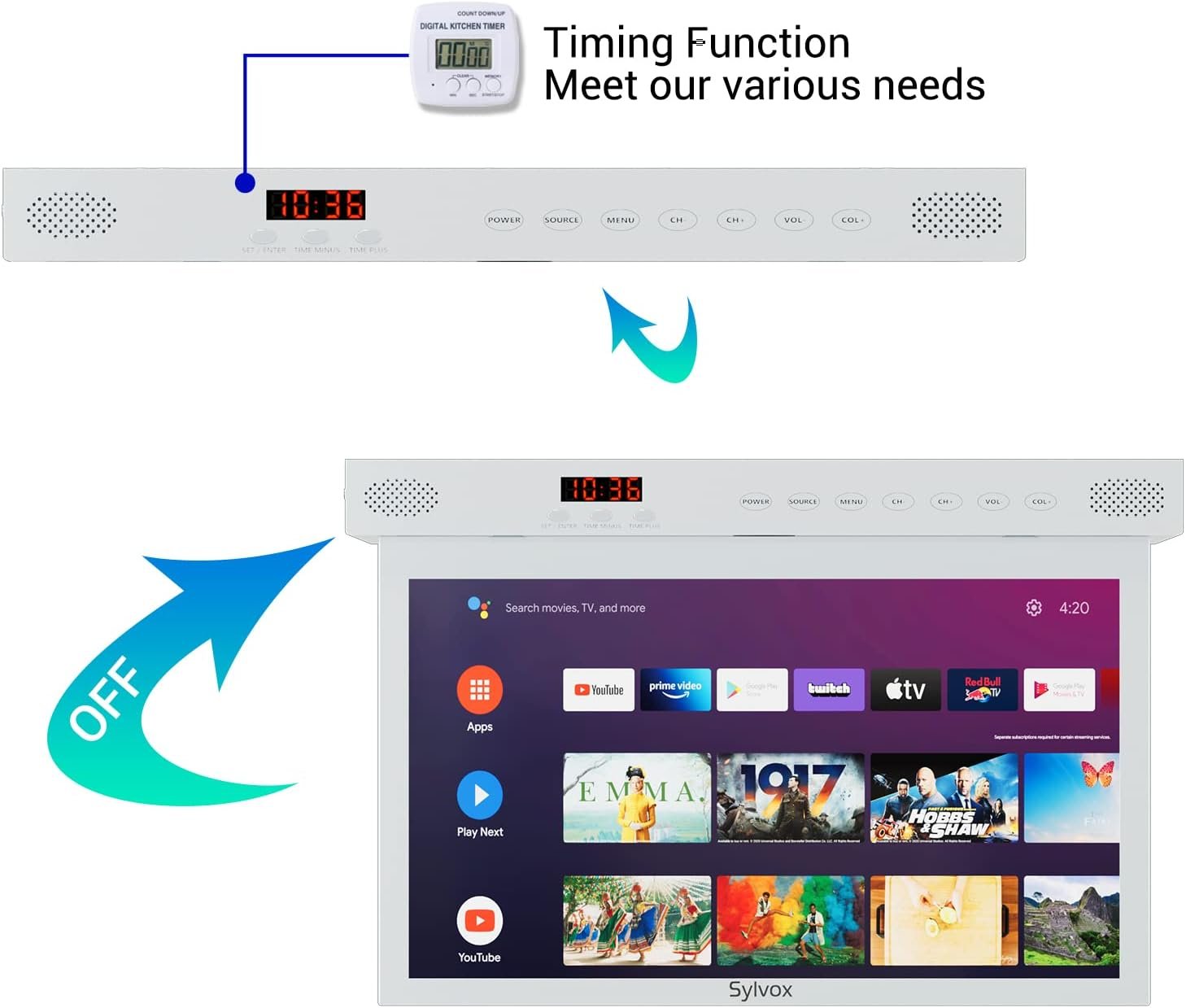 SYLVOX 15.6″ Kitchen Smart TV Flap Down Screen TV Google TV Supports LED Clock Alarm Clock WiFi & Wireless Connection, Storage Design, can be Installed in The Bottom of The Cabinet (KT16A0KGGA)