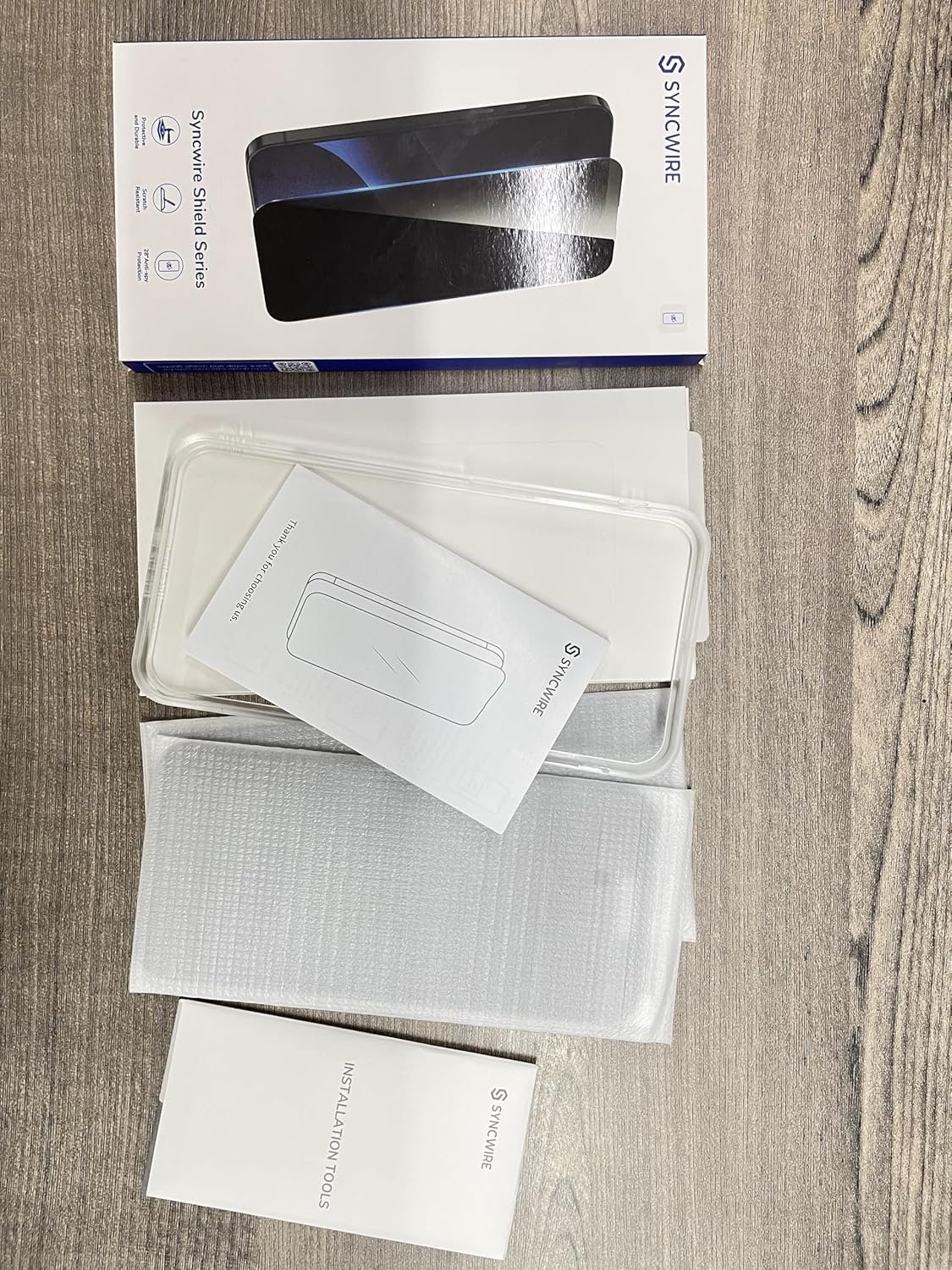 No More Bubbles – Syncwire’s anti-spy screen protector, with high-quality Korean adhesive, automatically expels air during installation. Lift and reapply to remove any bubbles quickly.