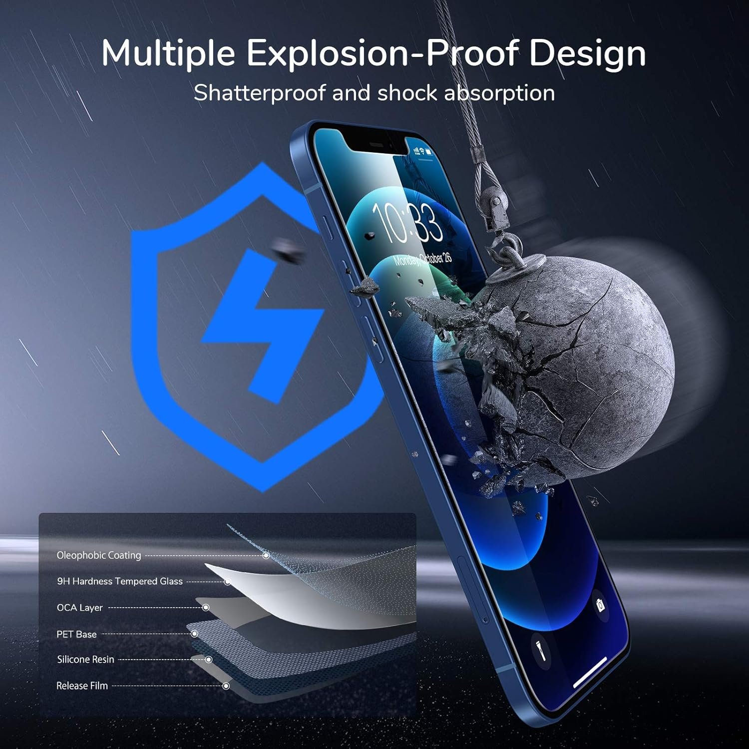 6X Stronger & Scratch Resistant: 6 times stronger than regular tempered glass, this iPhone 12/ iPhone12 Pro screen protector can withstand the impact of a 22-pound steel ball falling from the height of 6ft. 【9H Hardness】protects your screen from droping shock and any scratches by keys, coins, or even pocket knives.