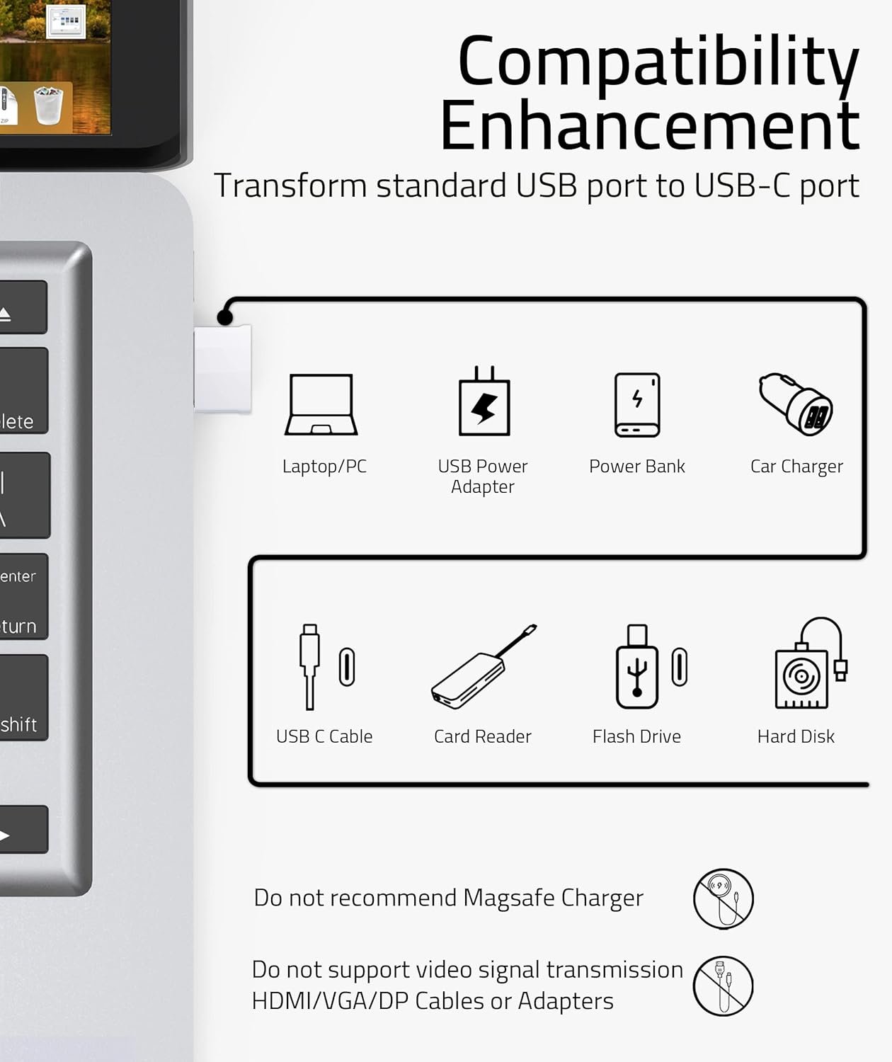 Efficient and Stable: Offer USB 2.0 data transfer speed up to 480 Mbps and supports enough power output for 3A fast charging. Please be noted: If you use it with Magsafe, a 15w or higher power adapter is recommended