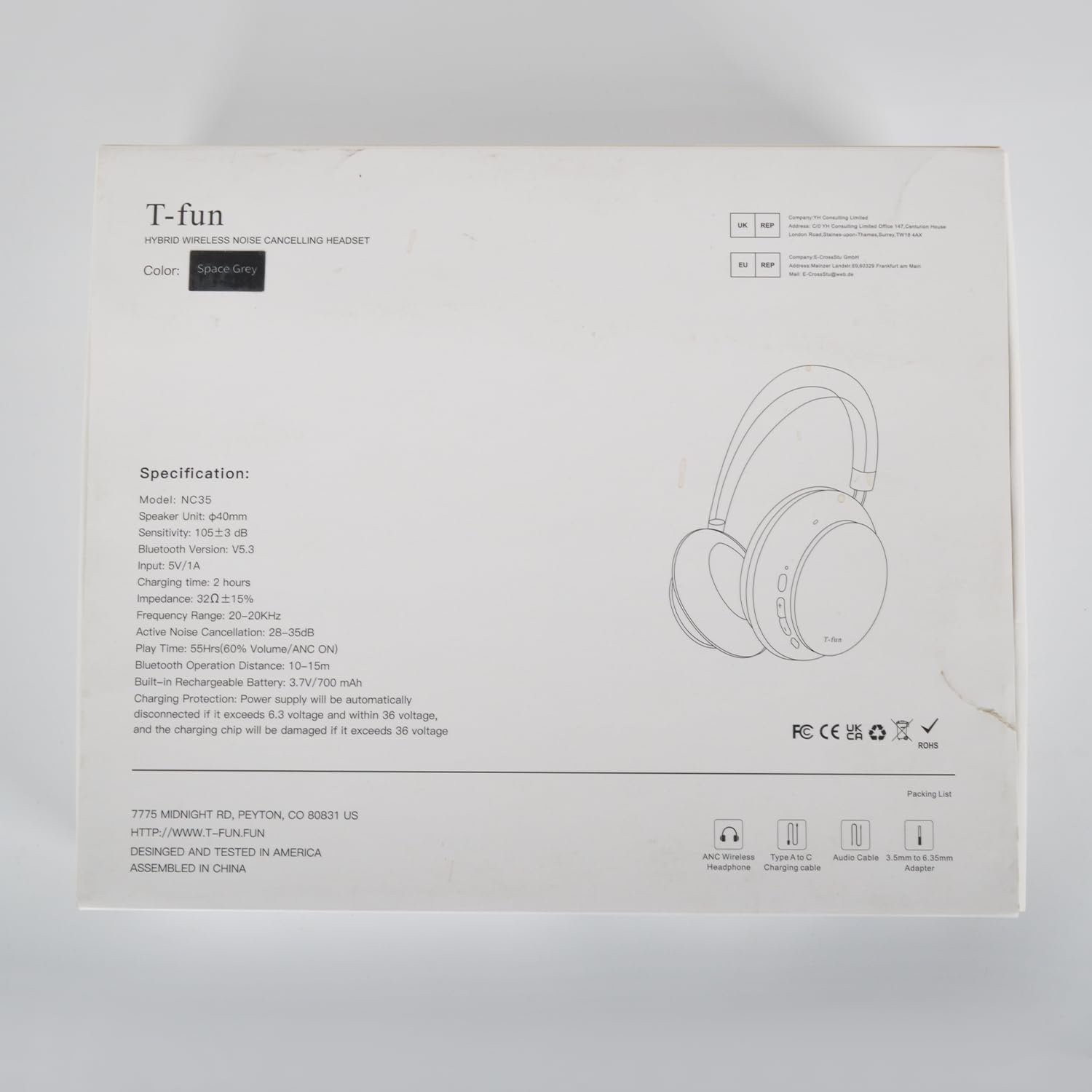 55H Playtime & Wired Mode: Built-in 700mAh large-capacity battery and energy-saving Bluetooth 5.3 chip, T-fun NC35 wireless headphones noise cancelling offer an impressive battery life up to 55 hours in wireless mode(60% volume, ANC on).10-minute Charge offers up to 3 hours of listening. Even if the headphones are completely out of battery, you can always use the included 3.5mm audio cable to listen in wired mode. Ideal for audiophiles and frequent travelers alike.