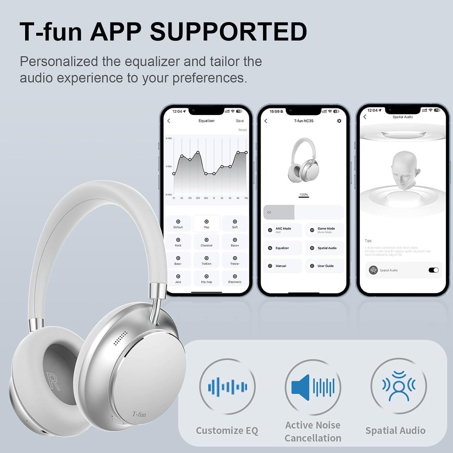 Enhance Your Experience with T-fun App: Personalize your listening experience with NC35 headphones via T-fun app. The app is user-friendly, clear, and intuitive, allowing for customization of the equalizer and making it simple to tailor the audio experience to your preferences. Unlock more music enjoyment with T-fun!