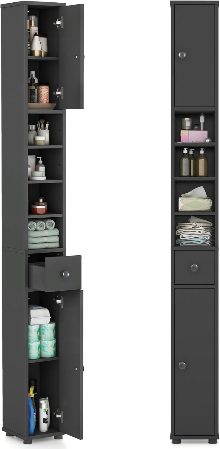 Perfect Space Saver for Small Rooms: This tall and slim storage cabinet utilizes every inch in your room to create additional storage space while eating up a small floor area. It will be a perfect addition to any corner in your room. Product dimension: 8″ x 8″ x 71″ (L x W x H).