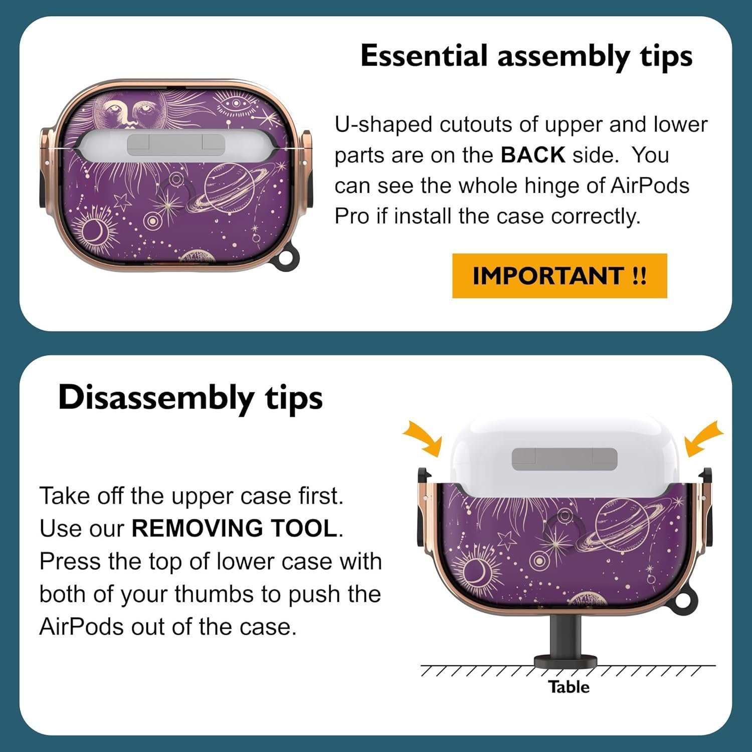 [Double-secure Lock & Hybrid Material] Two security locks, make sure your AirPods charging case won’t open accidentally. Made of hybrid material. Hard PC outer shell plus soft TPU core. Keep your AirPods Pro 2nd & AirPods Pro safer.