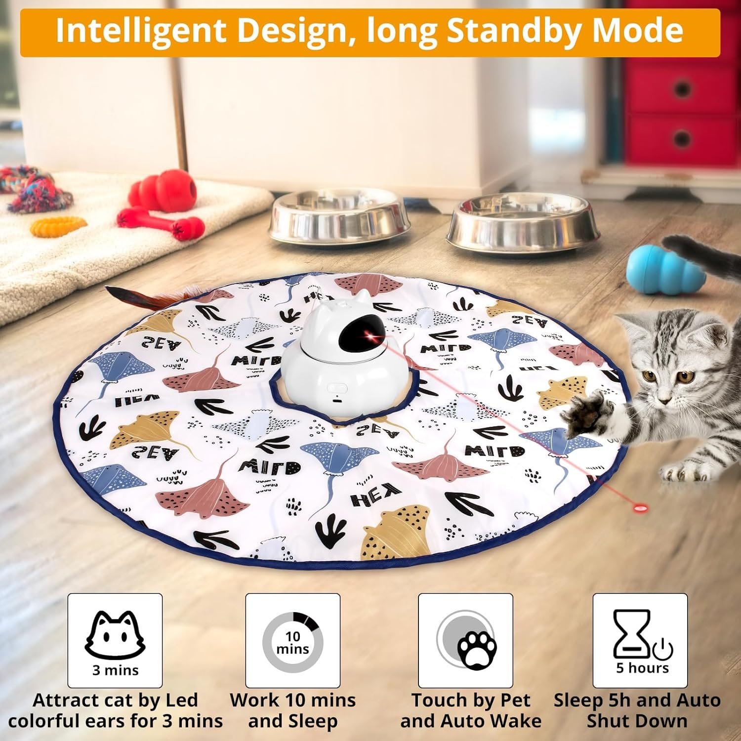 Silent and Durable: The rotating automatic cat toy features a gearless motor control design. 35dB silent motor, reduce noise, make us enjoy quiet during cat playtime; ABS material electric cat toy make cat toy well withstand scratching from cats, which ensures cat toy remains intact during the most exciting play; 3mins flashing colorful ears when turned on every time, attract pet interest,is an ideal gift for cats.