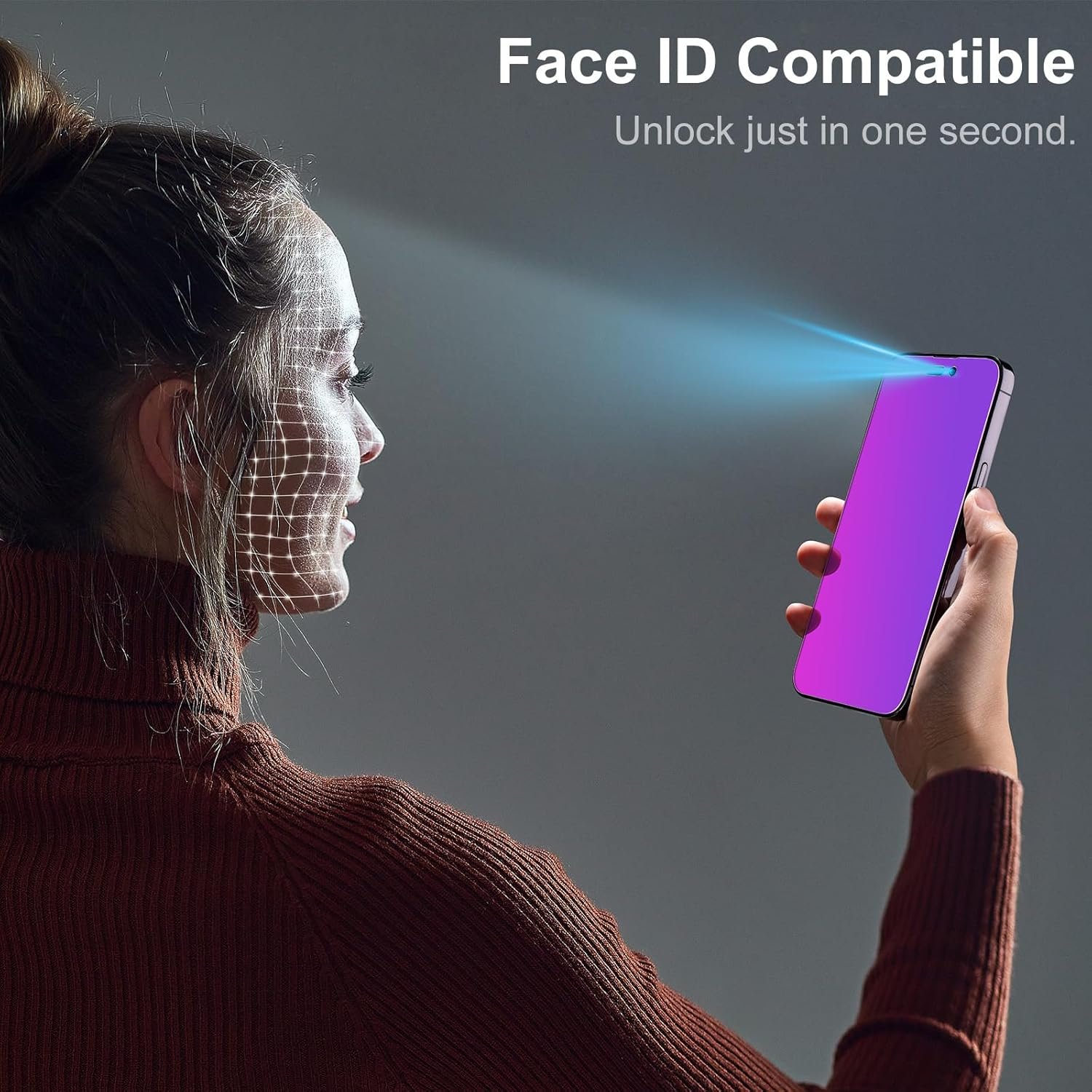 ANTI BLUE LIGHT – Our screen protector film effectively filters out 90% of blue light, ensuring your eyes feel comfortable and healthy during prolonged phone usage. Reduced eye strain and enjoy screen time without compromising your well-being.