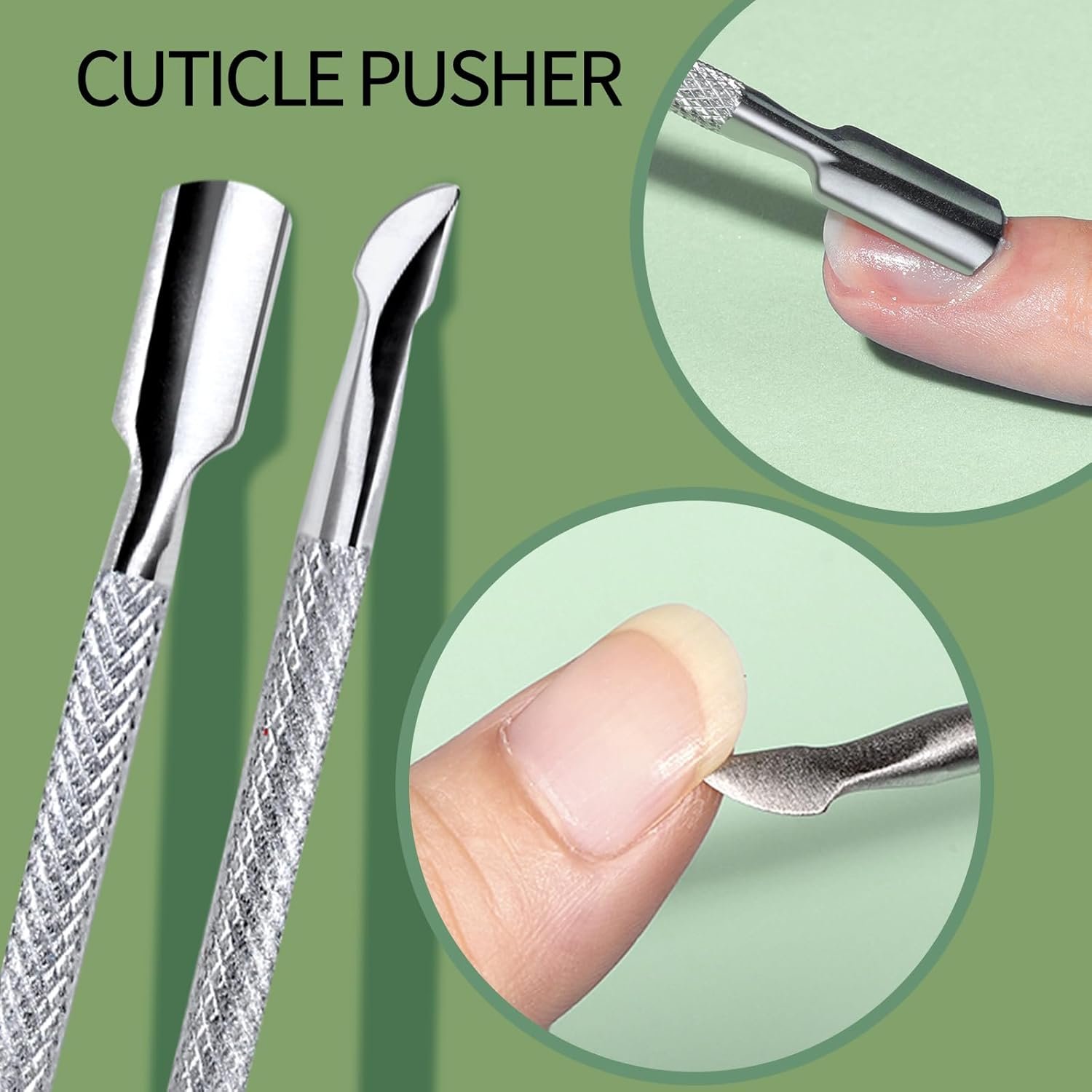 CUTICLE TRIMMER + CUTICLE PUSHER: Made of high quality polished stainless steel, the cuticle trimmer feature a jaw design that provides a great grip even in small areas around the nails to cut through the cuticles. The cuticle pusher has a sharp end that can cut or scrape away dead skin, while the curved flat end works greatly to push the skin back into place.