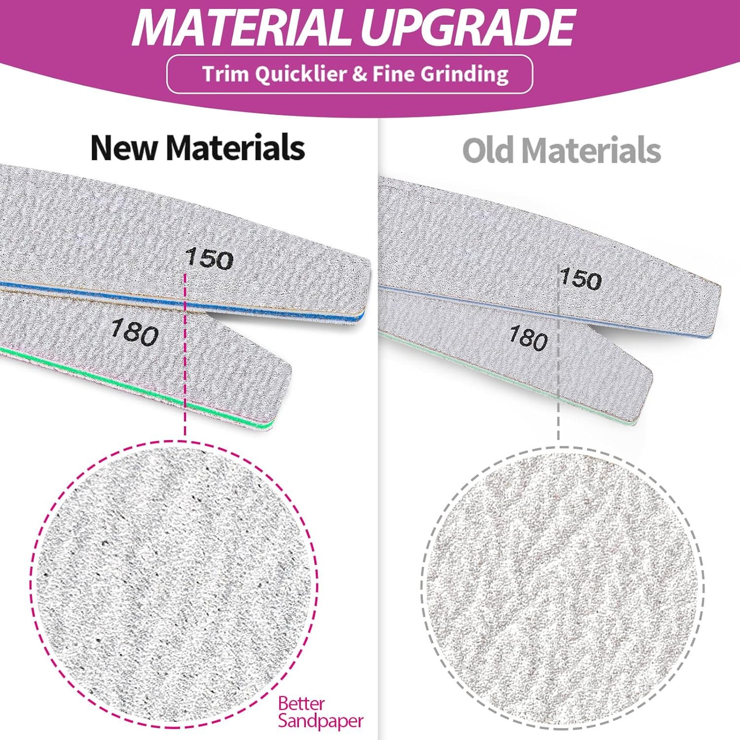 150/180/240 Nail Files for Acrylic and Gel Nails & Natural Nails: File – Start with this STEP 1 to trim your nails to desired length or shapes like Oval, Square, Squoval, Round, Almond, fit for fingernail & toenail. You can also use them to remove top coat of gel nails and acrylic nails(Tips: 150 grit is rough, 180 grit is medium and 240 grit is fine)