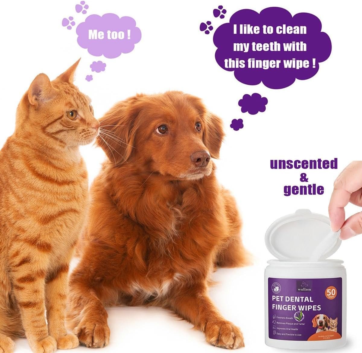 WALLZON soft pet dental finger wipes keep your dog’s teeth clean and fresh. These teeth cleaner wipes are ideal for removing plaque and food particles after meals. The gentle formula is specifically developed to clean dogs teeth and gums without causing irritation. With 50 wipes each pack, you’ll have enough for daily dental care in between expert cleaning appointments. Simply use a single wipe and gently rub it along the gumline and between teeth. The smooth, durable texture removes surface stains and odors. Your dog will not mind the fast wipe-down because the pet dental care wipes are unscented. Include these cat and dog dental wipes in your pet’s regular routine to help prevent dental problems. A clean mouth promotes improved overall health.