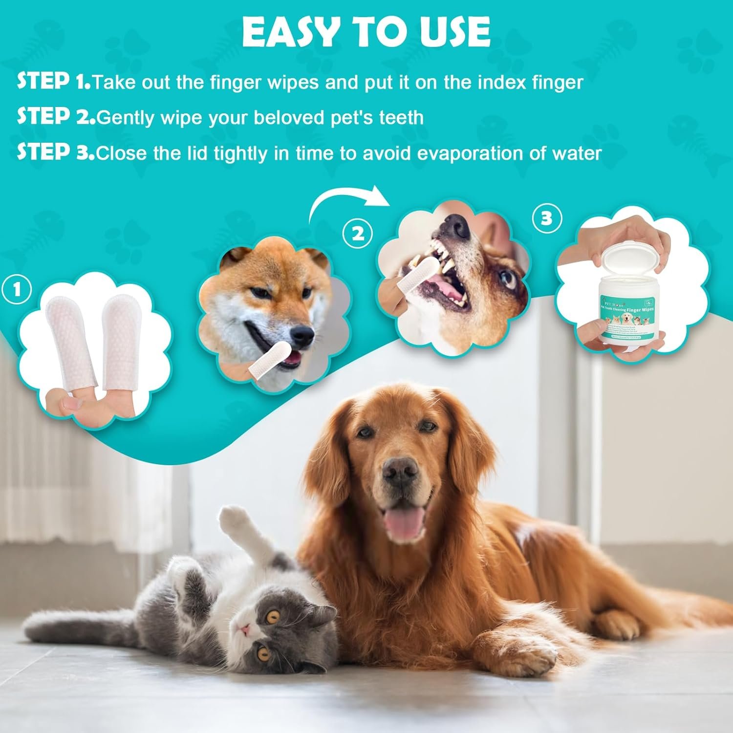 Dental cleaning finger wipes designed for pets Veterinarian recommended Removes residue from teeth