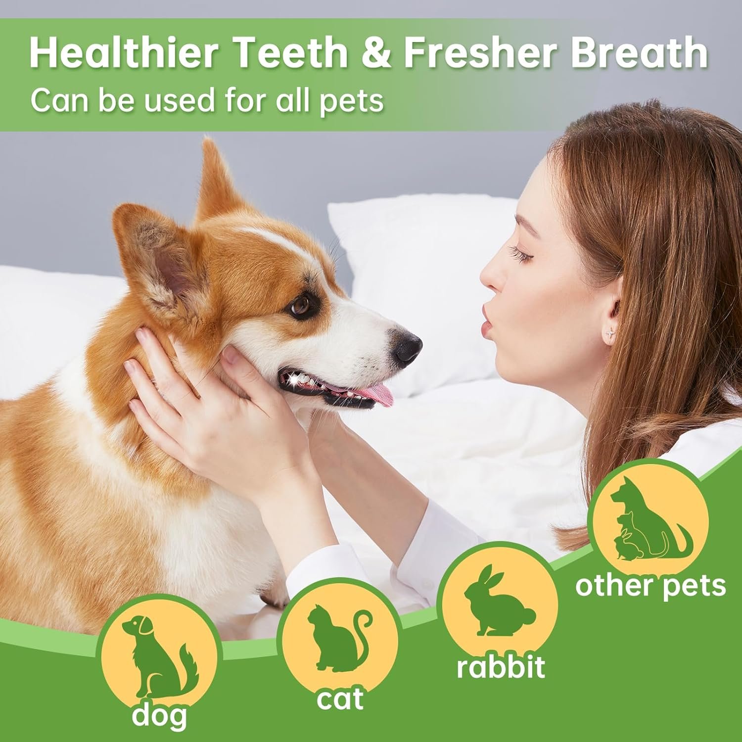 🌱 Effective Ingredients: This product contains tea polyphenols, citric acid and other raw materials, which are not only can remove tartar & plaque, but also remove oral odor, so that the pet can more closely interact with their owners.