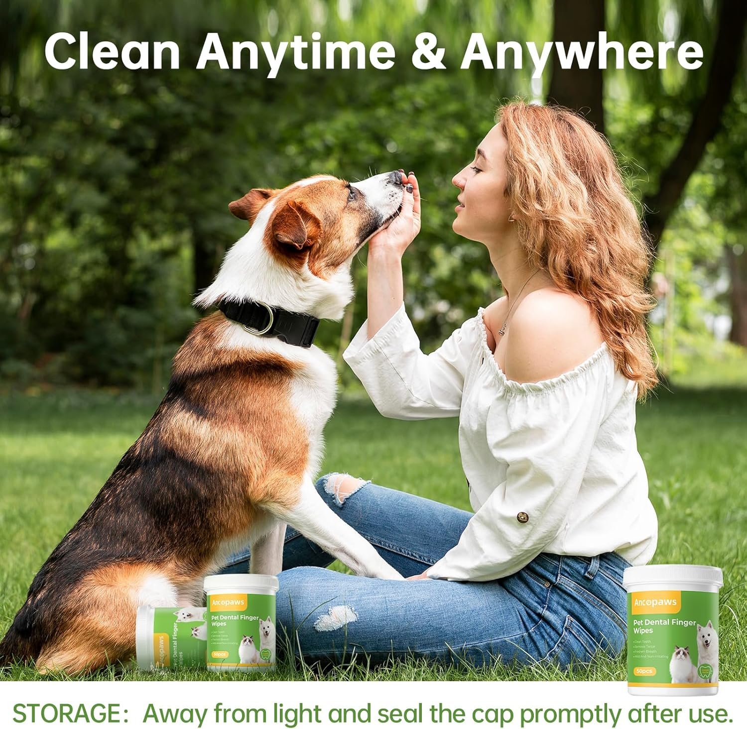 👆️ Teeth Cleaning Wipes: This is a dental care finger wipes, which can remove tartar and freshen breath, so that your beloved pets can have cleaner teeth and fresher breath.