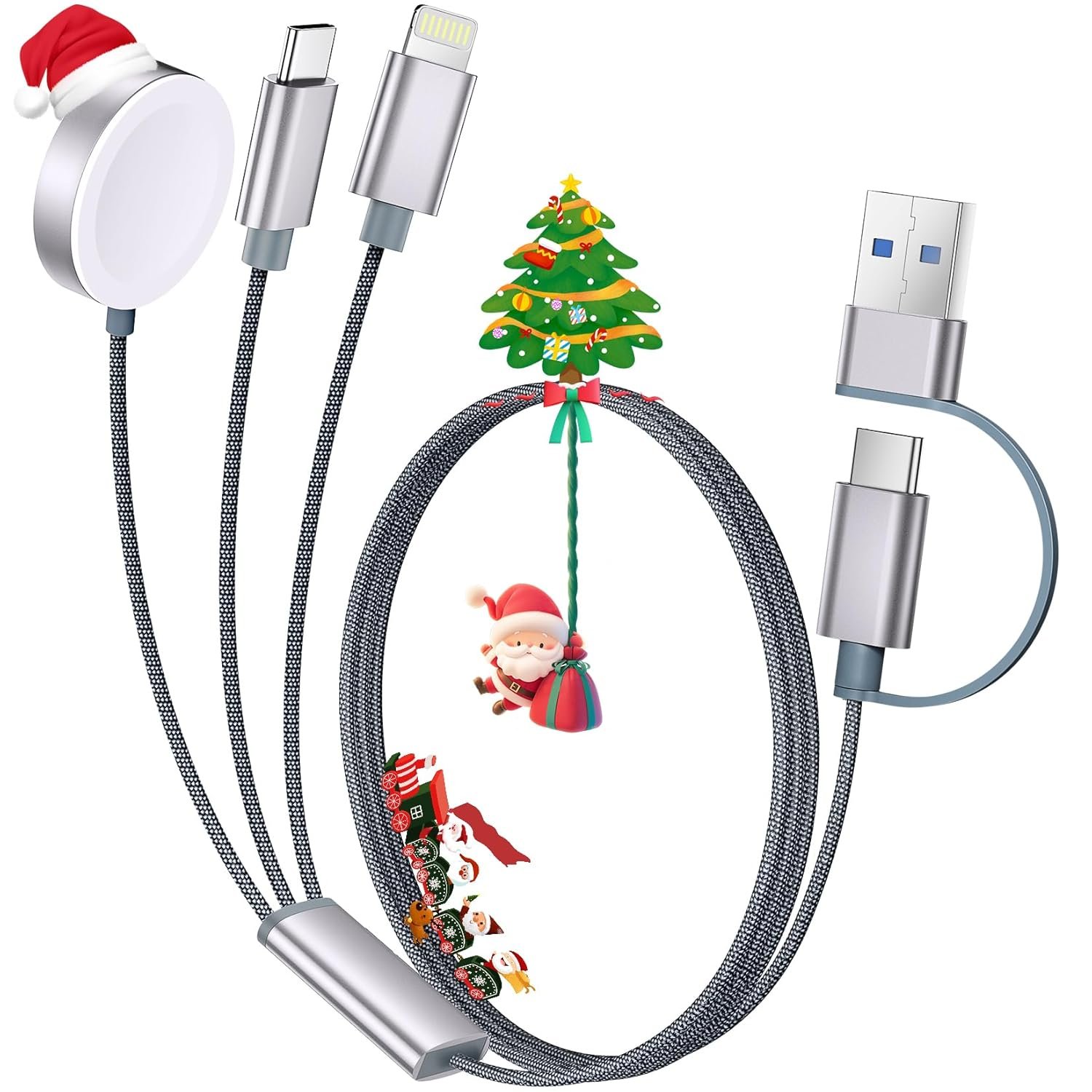 【3-in-2 Charging Design】3 in 2 charging cable provide 6 charging methods — USB C/A to iWatch charger, USB C/A to Lightning cable, and USB C/A to Type C cable. The multifunctional charger supports charging 3 devices simultaneously using a USB C/A adapter, and is compatible with all iWatch Ultra series 9/SE/8/7/6/5/4/3/2/1. The Lightning connector is compatible with iPhone 14/13/12/Pro/Max/iPad, and USB C is suitable for iPhone 15 Charger/iPhone16 Charger/iPhone 16 Accessories/iPhone 16 Adapter