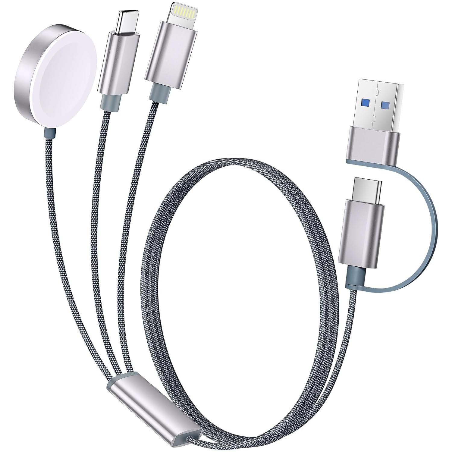 【High-Quality Materials and Support】Our multifunctional charging cable is made of nylon braided material, offering excellent durability and flexibility, having undergone over 45,000 stretch tests. The 3D aluminum alloy connector and laser welding technology enhance its lifespan and heat resistance, ensuring the metal parts do not break. If you have any issues, please contact us for a suitable solution
