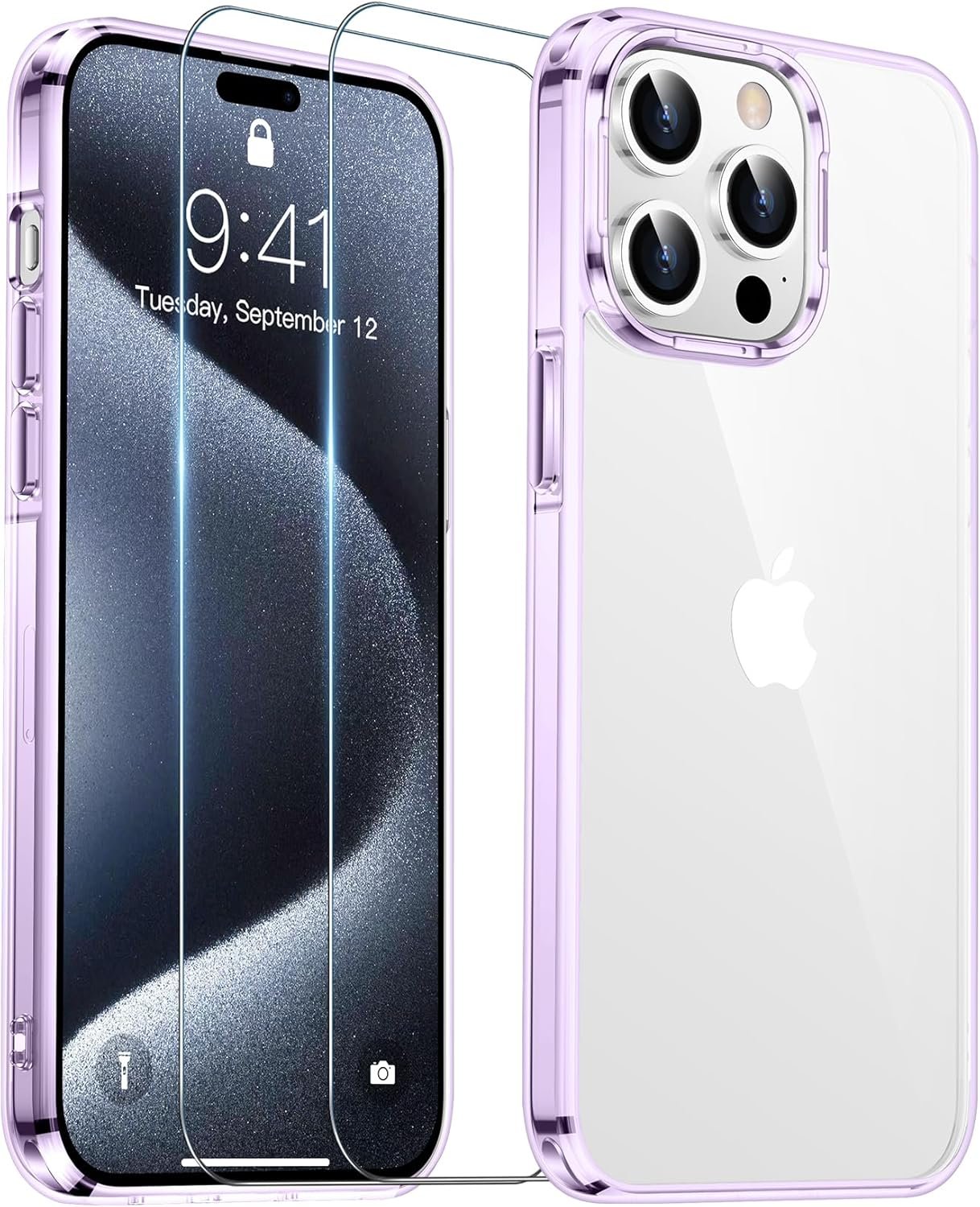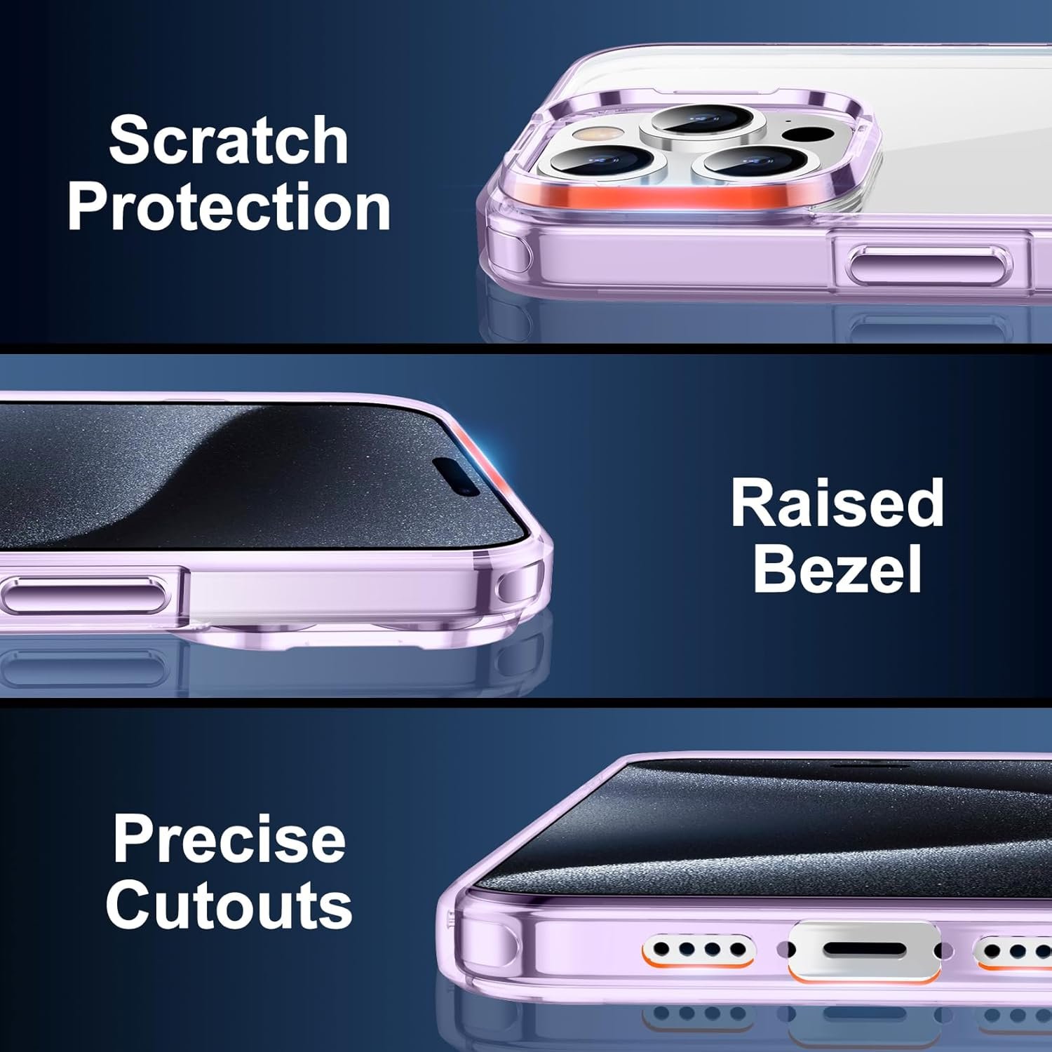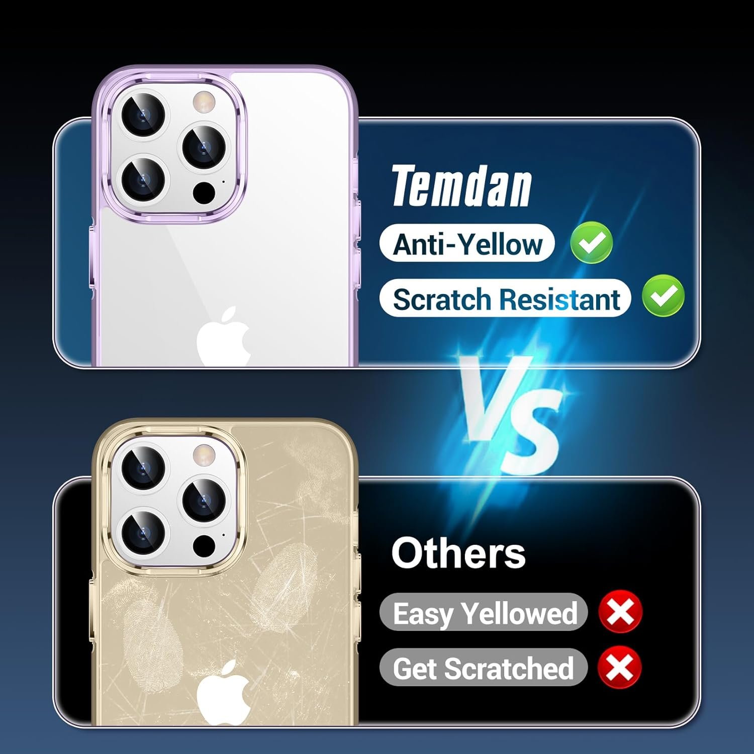 Temdan Designed for iPhone 15 Pro Case Clear,[Anti-Yellowing][10FT Military Grade Drop Protection][Anti-Scratch] Slim Fit Yet Protective Shockproof Bumper Phone Case 6.1 inch 2023-Purple/Clear