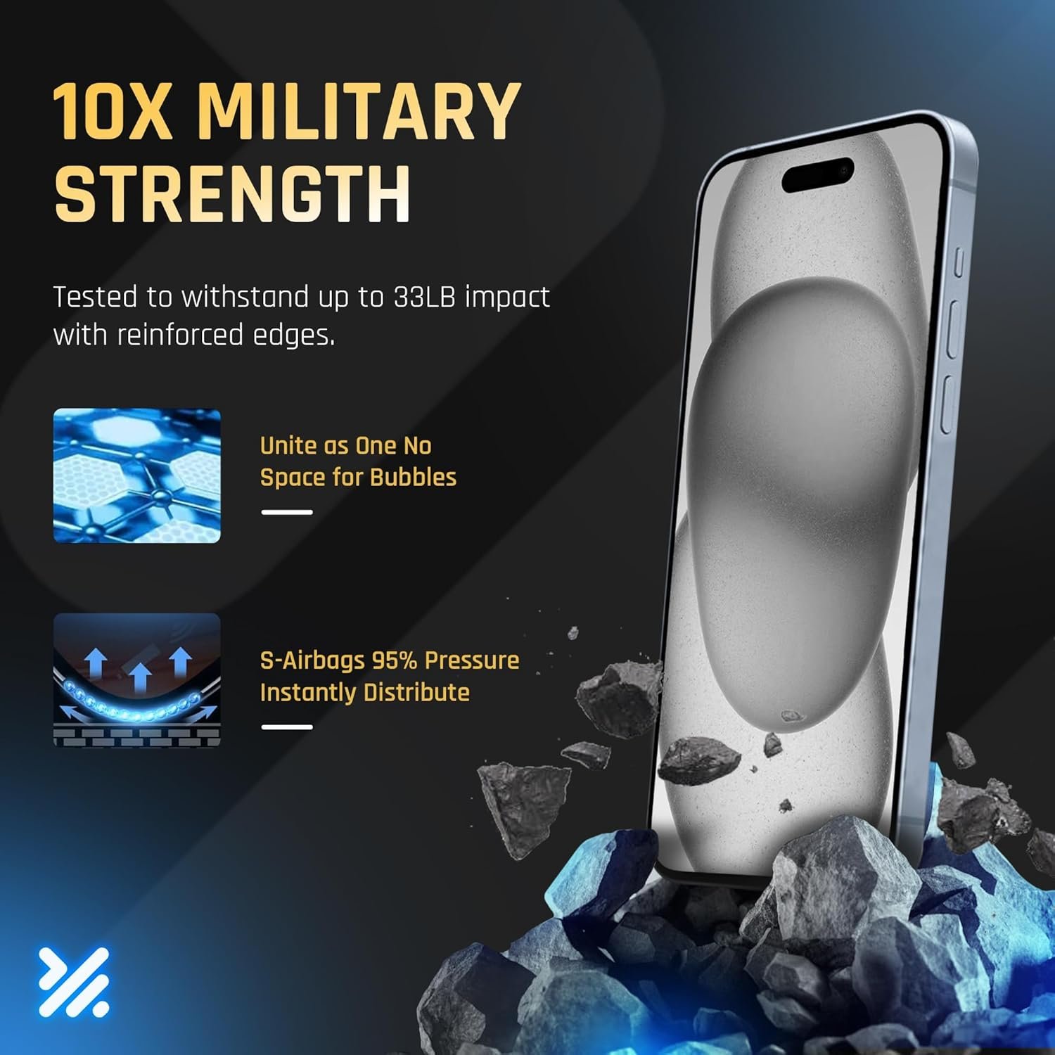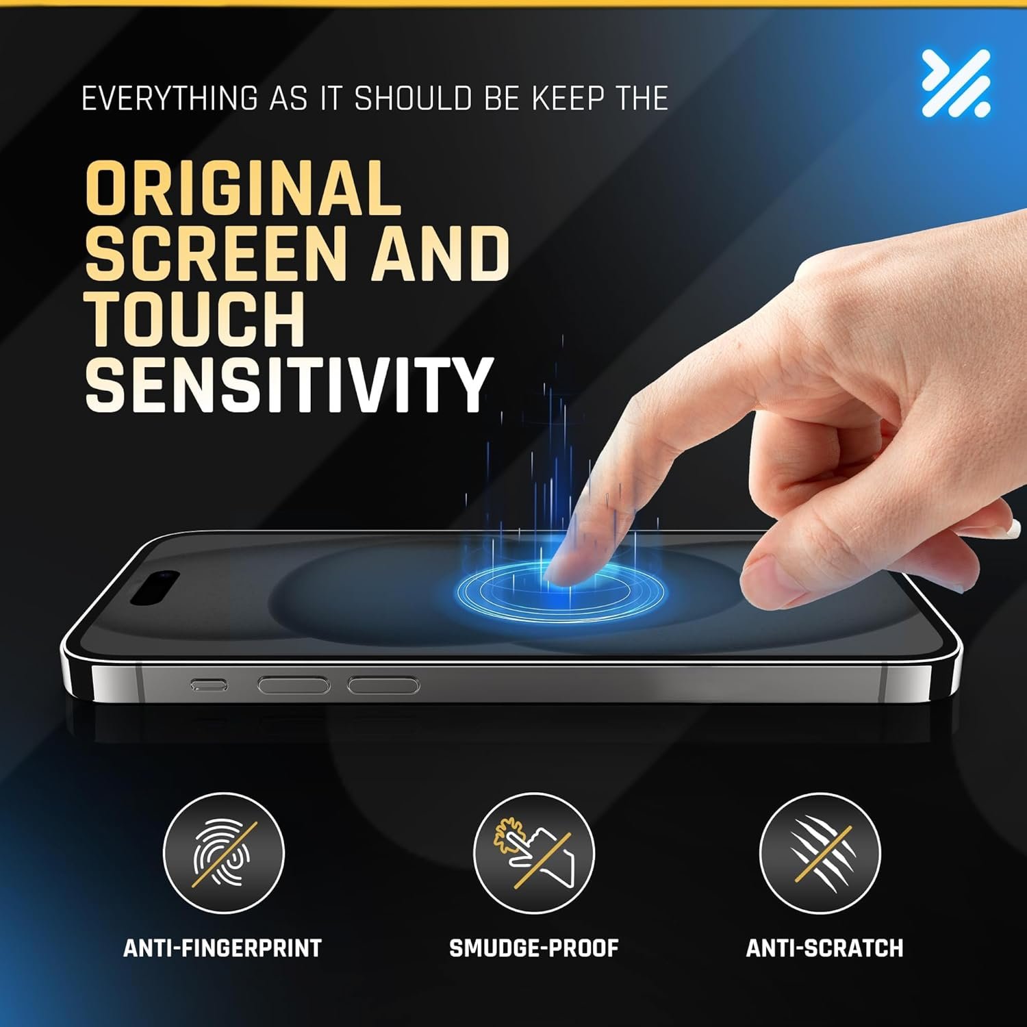 💎𝗔𝗡𝗧𝗜-𝗦𝗖𝗥𝗔𝗧𝗖𝗛 & 𝗜𝗠𝗣𝗔𝗖𝗧 𝗣𝗥𝗢𝗧𝗘𝗖𝗧𝗜𝗢𝗡: Our glass for 15 pro max defends your phone screen against scratches and impacts boasting an impressive 9H+ hardness rating. This top-notch protection ensures your phone’s display remains pristine, resisting the wear and tear of daily use.