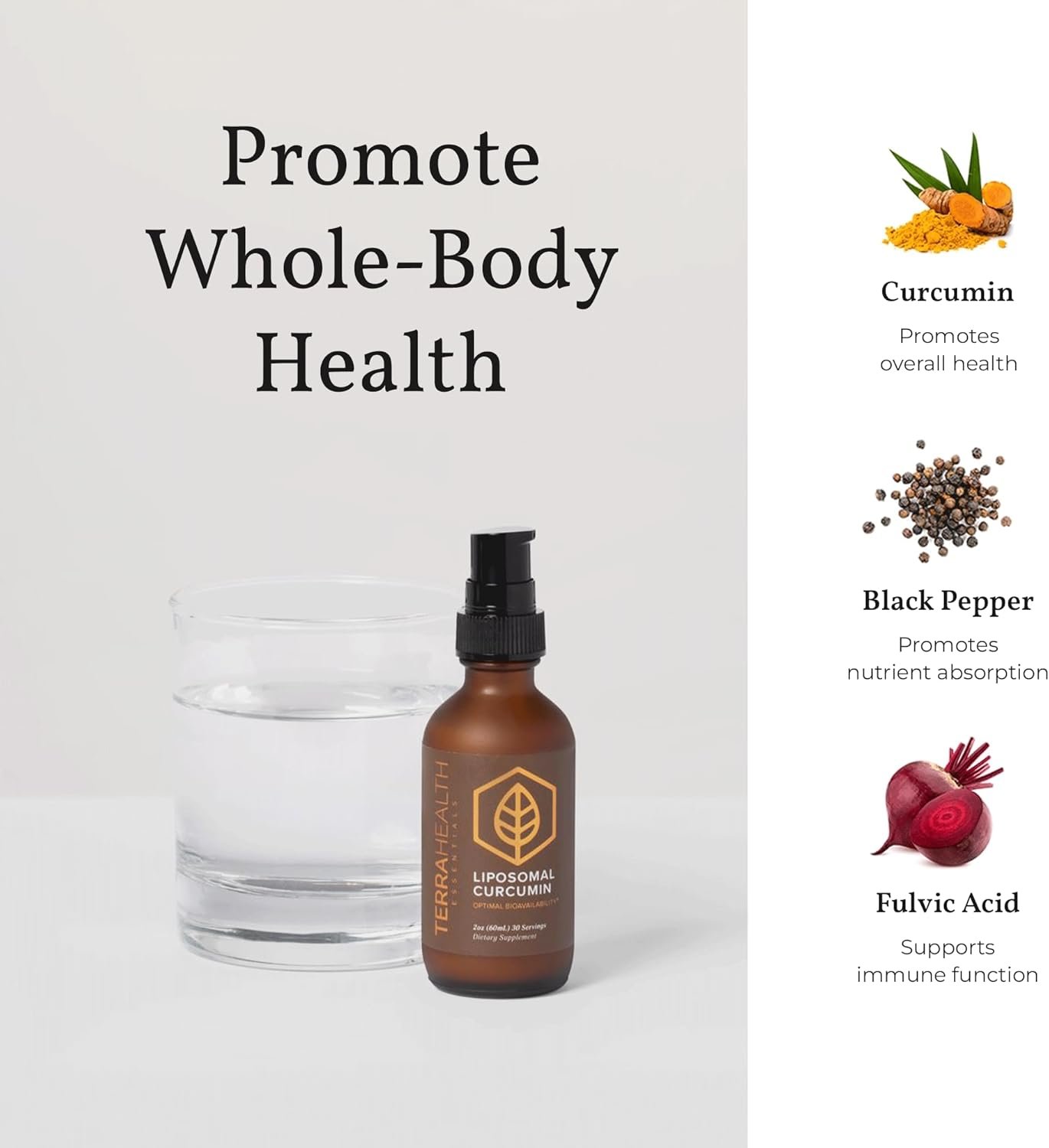 Terra Health Essentials – Liposomal Curcumin – Natural Joint Support with Turmeric, Black Pepper, and BioPerine – 1 Bottle, 30 Day Supply
