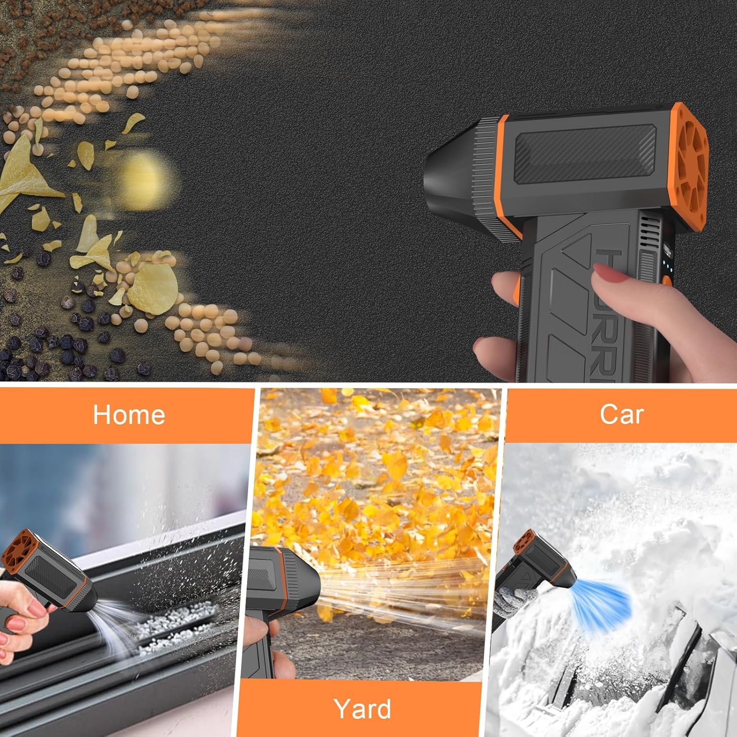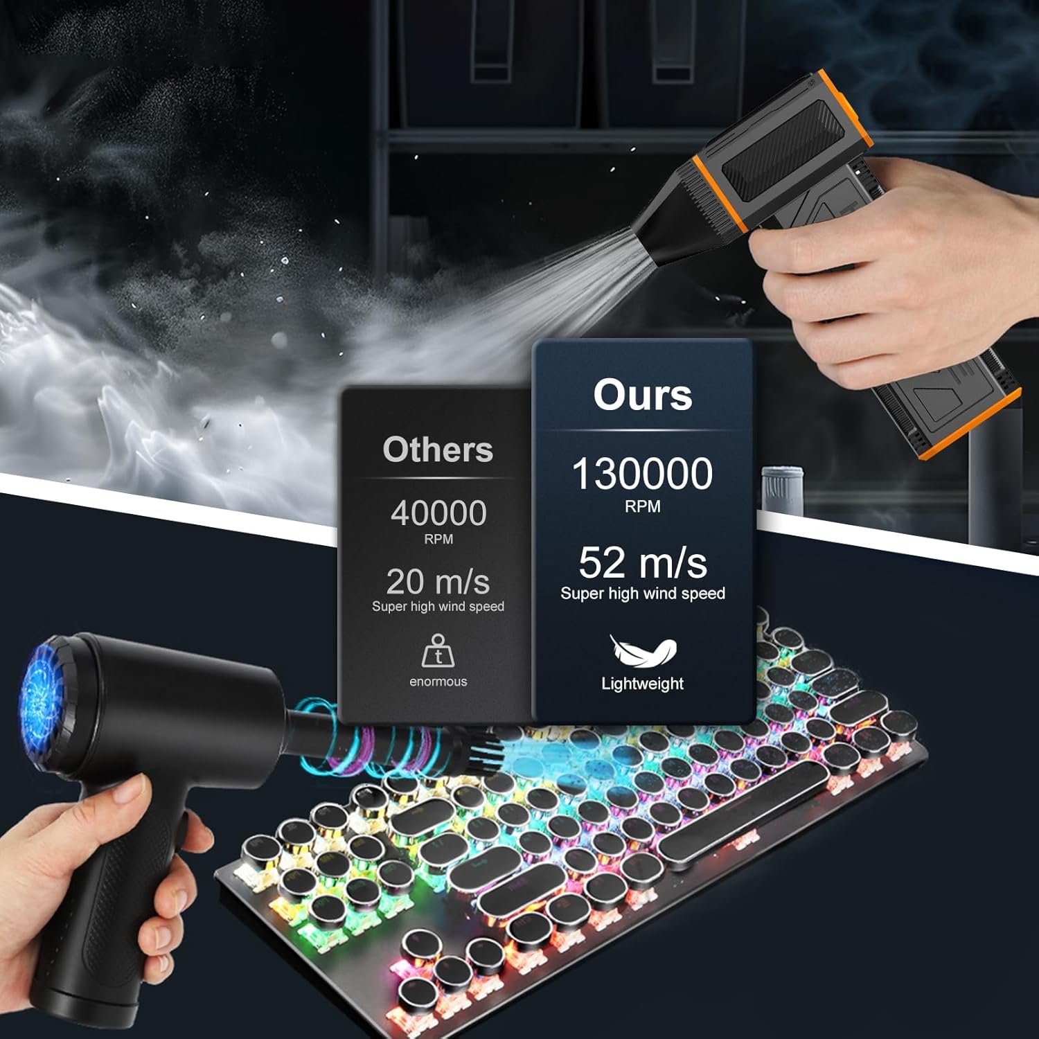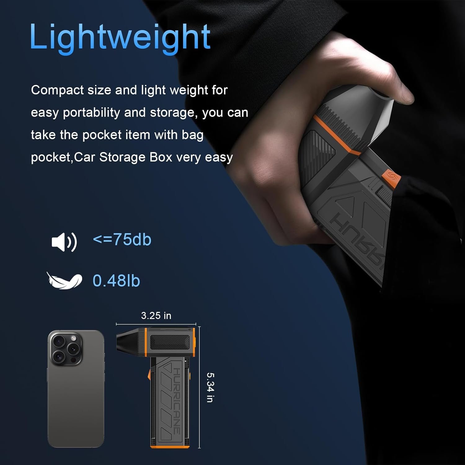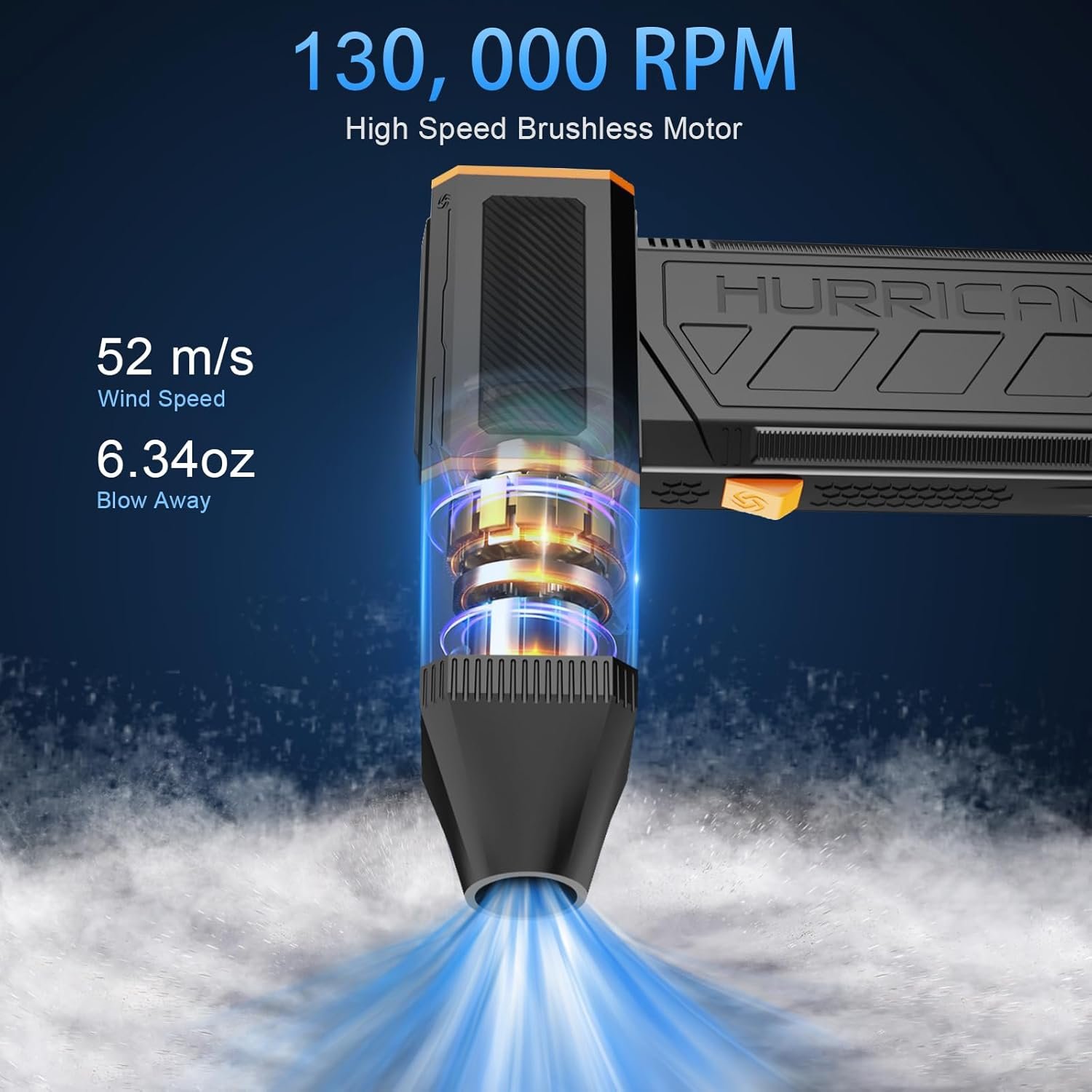 Advanced 130,000 RPM Motor – Equipped with a high-speed brushless motor, this high pressure mini blower delivers a top wind speed of 52m/s and a blowing force of 6.34oz. High-quality motor and battery ensure stable wind speed, effortlessly handling dust, rain, and snow.
