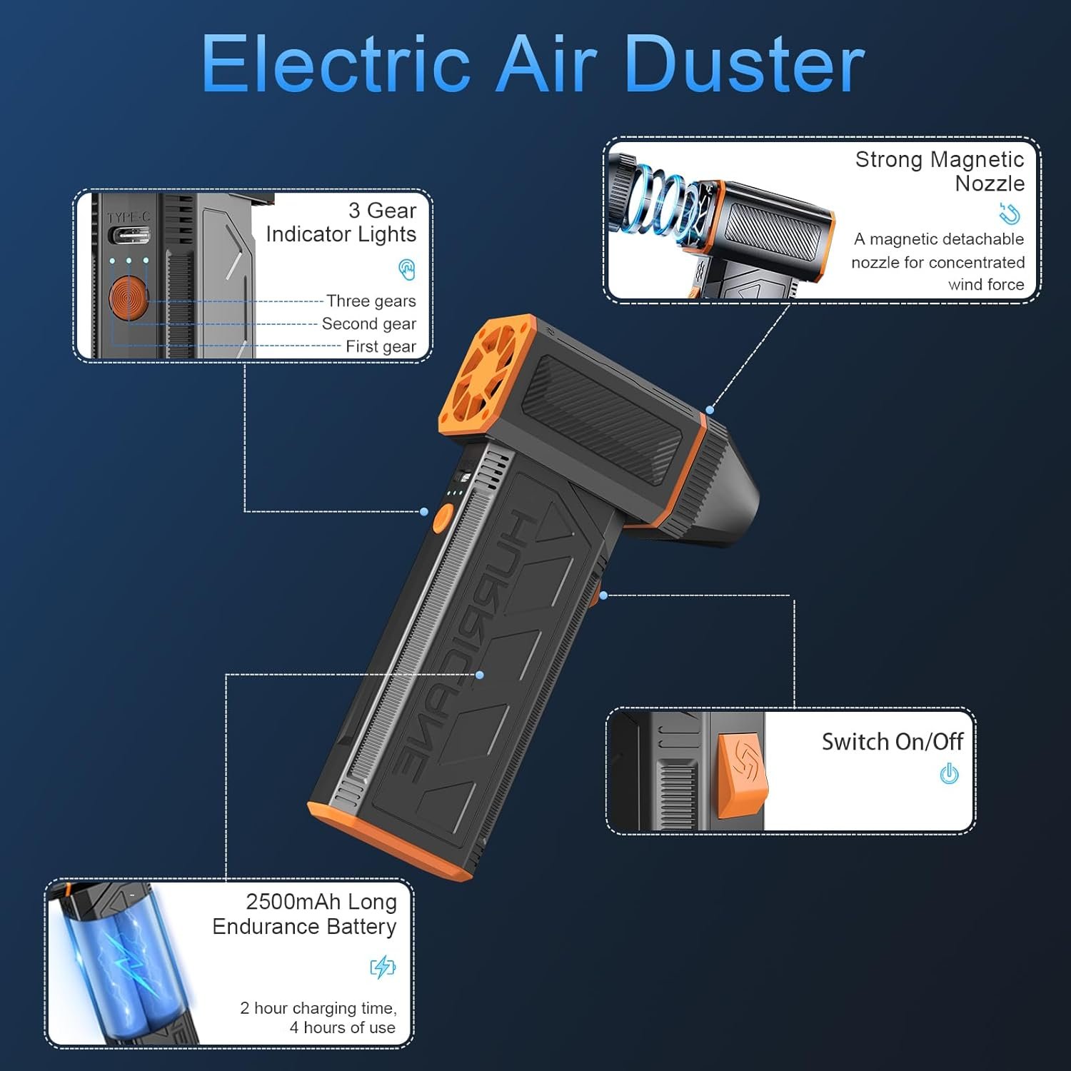 High Pressure Air Blower – At KNEWKEY, your satisfaction is our priority. If you have any questions or concerns, our dedicated service team is here to help. (Tips: Use a 5V1.5A power adapter, charging time is approximately 2 hours.)