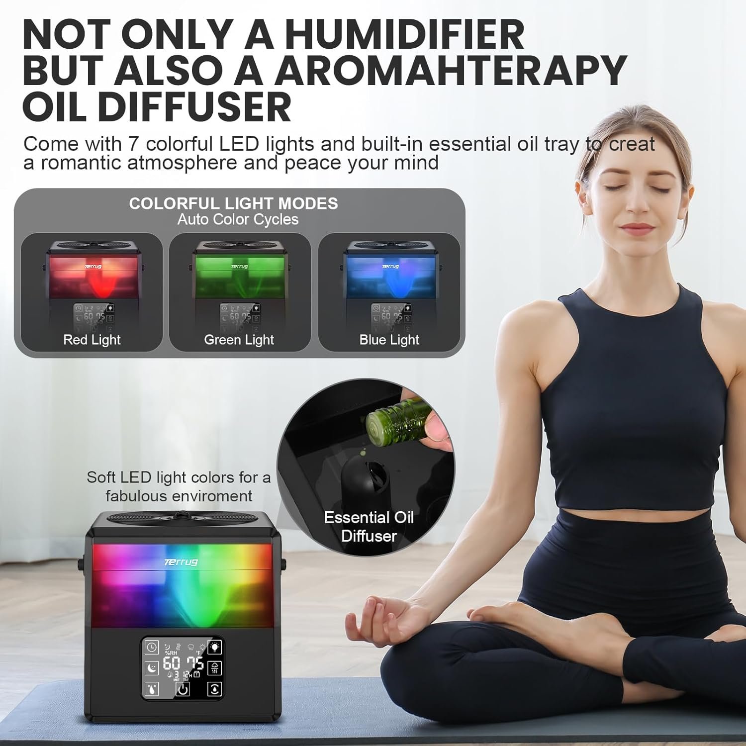 Remote Control & Timer – With convenient remote control access, you can easily adjust Terrug humidifier settings no matter where you are in the large room. The 1-12H timer gives you more time to choose from, so you don’t have to worry about accidentally turning on the large humidifier, providing you with a rest assured and comfortable sleeping environment.