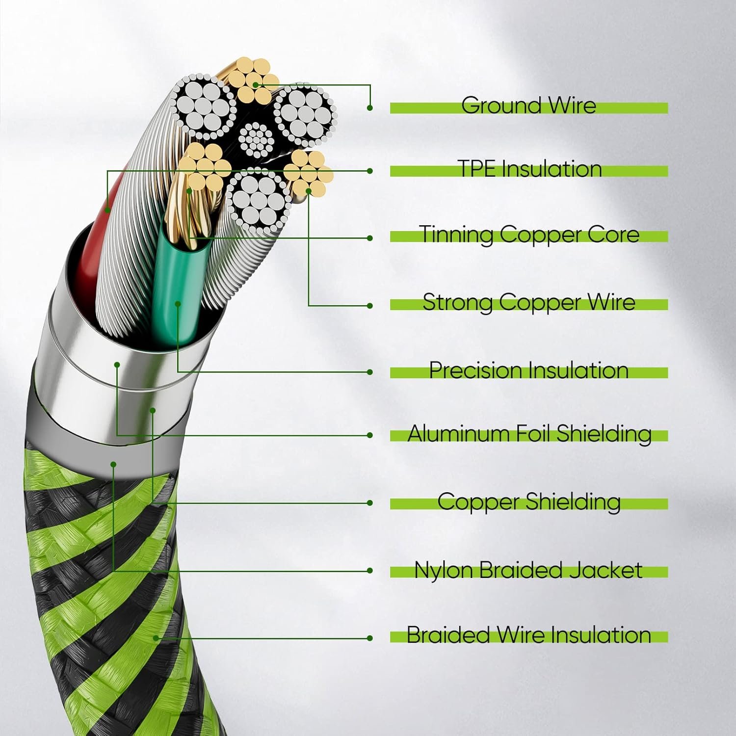 Premium Nylon Braided Cable: With its braided nylon insulation and precisely layer-welded connectors, which make it more durable and sturdier than normal cable