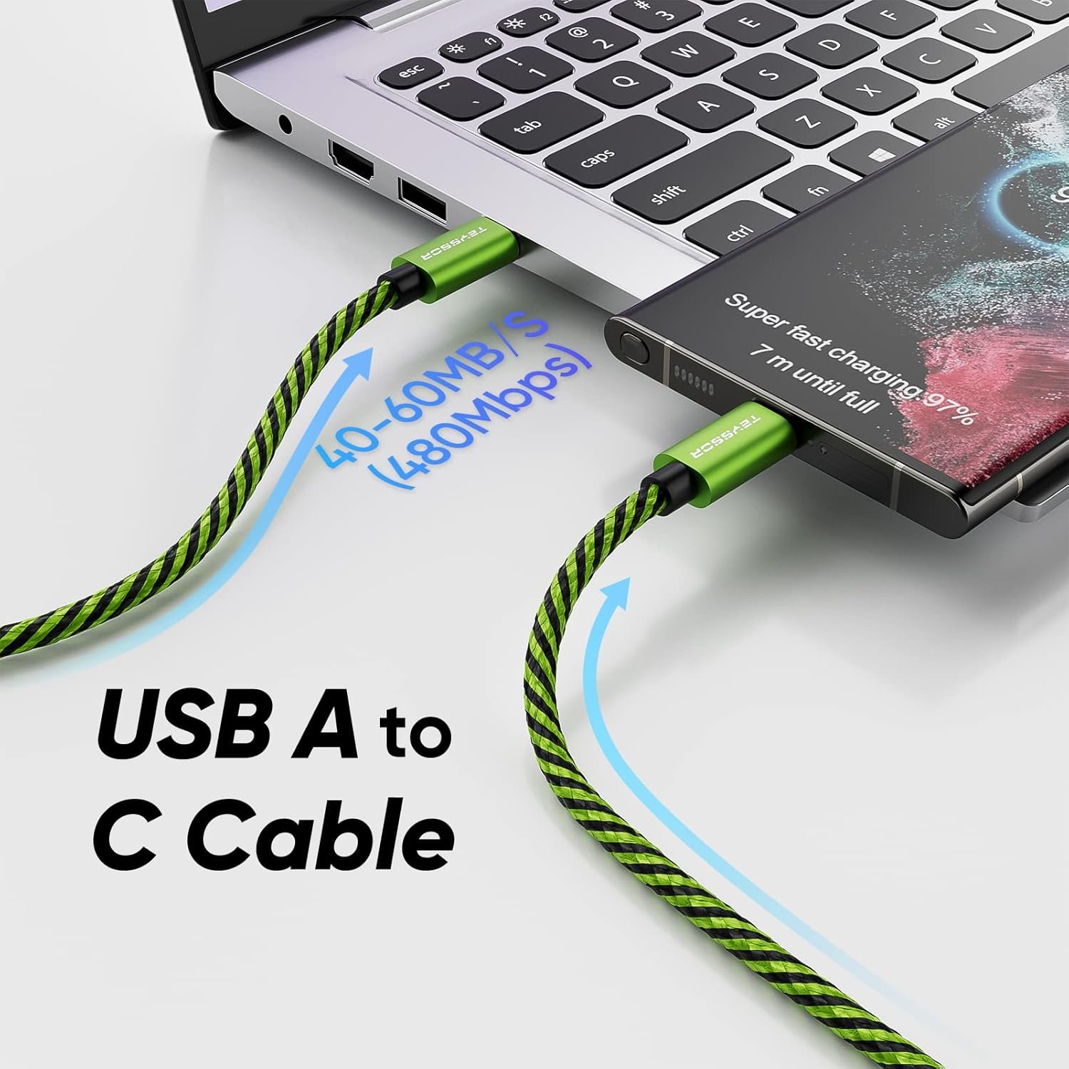 High Speed Charging & Sync: USB TypeC to USB A Cable supports a safe fast charging and the speed of data sync up to 480Mb/s. NOTE: To achieve fastest charging speed, you need an USB A port charger that supports 100W of output power