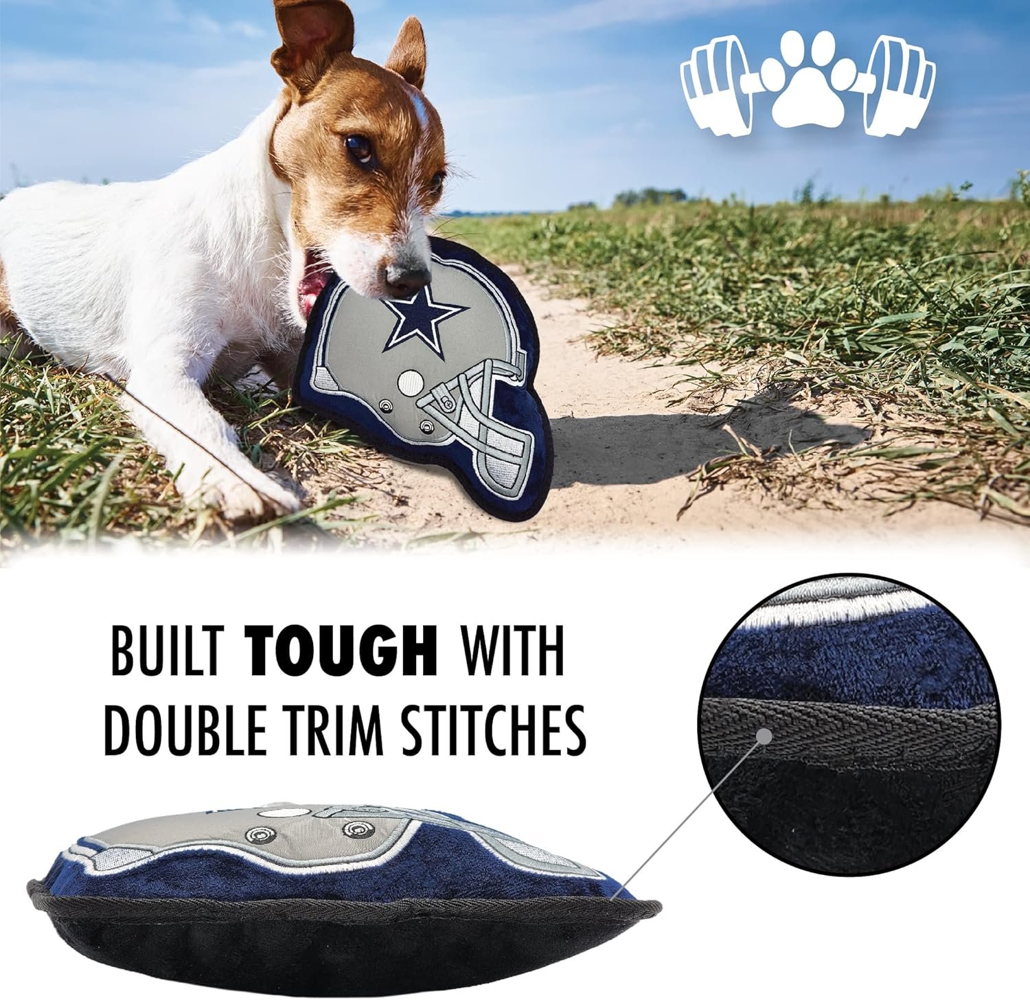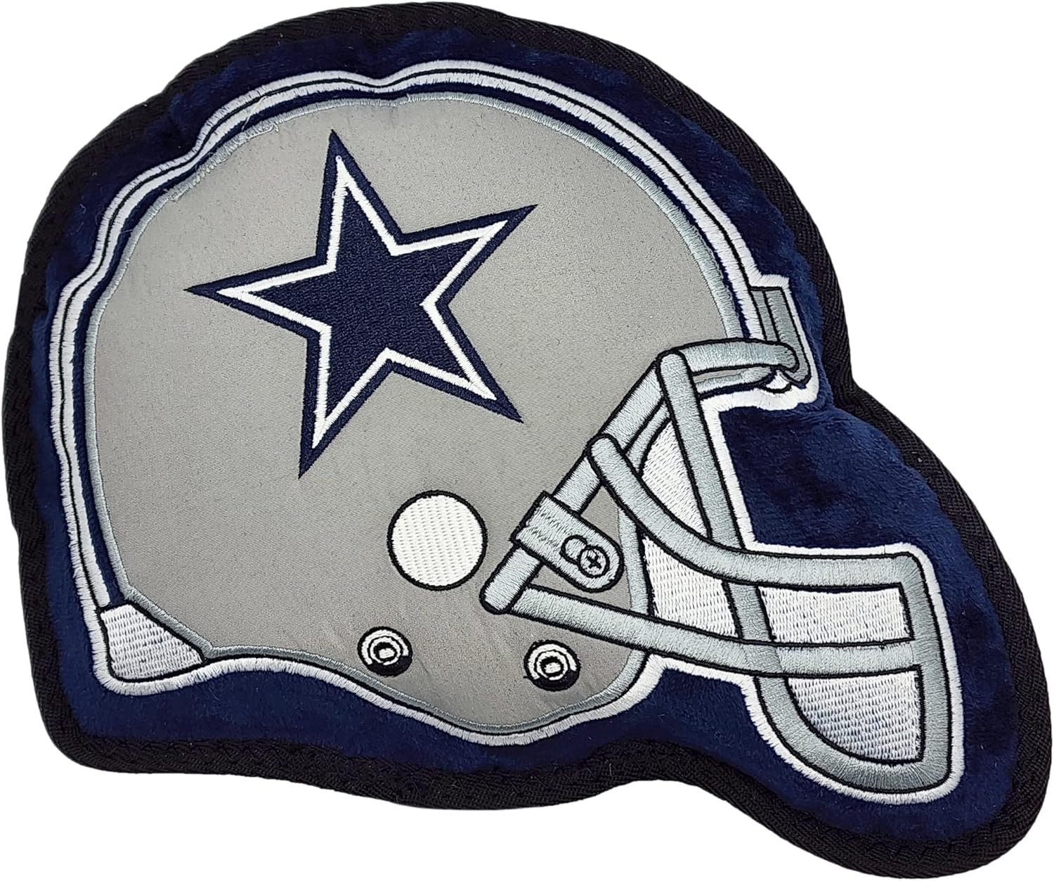 ALL IN ONE HELMET DOG TOY – You can now purchase a fun dog toy that has all your favorite features: 1). TOUGH & DURABLE nylon materials with double trim stitches. 2). Built-in squeaker for more fun. 3) Can FLOAT in water, think of those POOL PARTIES & WALKING AT THE BEACH. 4). HELMET SHAPE & DESIGN with Your favorite NFL team name and logo in Premium Embroidery!